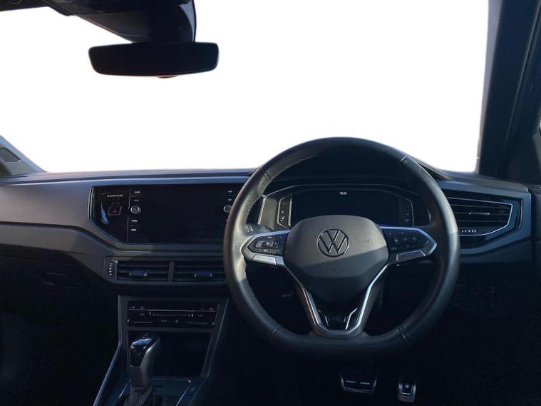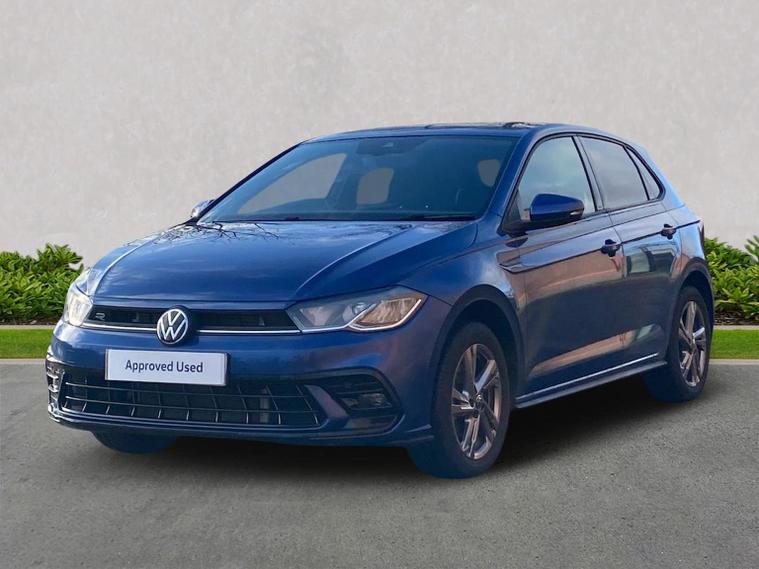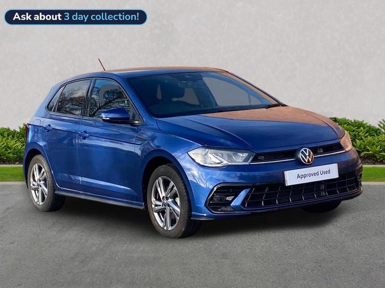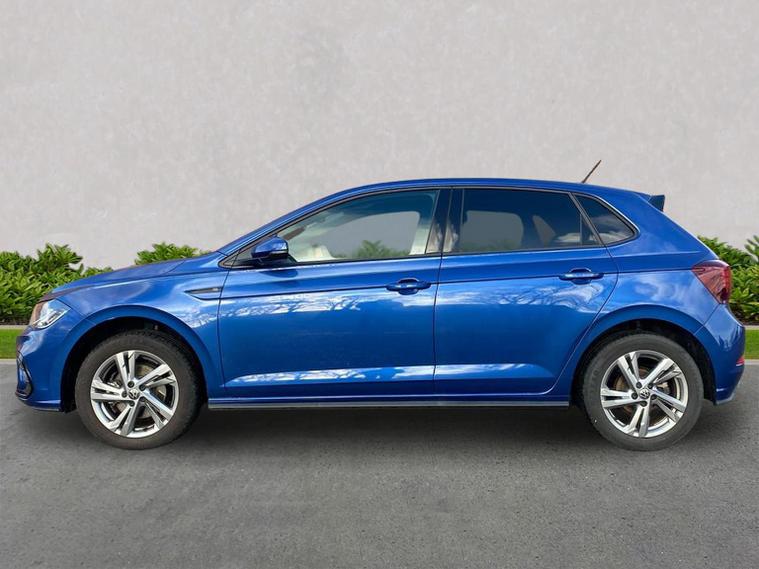Polo R-Line 1.0 TSI 115PS 7-speed DSG 5 Door finished in Reef Blue Metallic with contrasting R-Line interior and 26, 466 miles. Powered by the responsive 1.0 TSI petrol engine producing 115PS and paired with a smooth 7-speed DSG automatic gearbox, this Polo delivers an excellent balance of performance and efficiency, making it ideal for both town and motorway driving. R-Line trim gives the car a sporty appearance inside and out, while the specification includes rear tinted glass, Digital Cockpit Pro with 10.25-inch display, Discover Media navigation system with streaming and internet, wireless App-Connect, Bluetooth connectivity and dynamic road sign display. Comfort and convenience features include Air Care Climatronic dual-zone air conditioning, Light & Sight Pack with automatic headlights, rain sensor, high beam assist and auto-dimming rear view mirror. Safety and driver assistance systems include Travel Assist with lane keeping and traffic jam assist, Adaptive Cruise Control, Front Assist with autonomous emergency braking and an anti-theft alarm system. A well-presented example with a strong specification, Euro 6 compliant, HPI clear and ready to drive away.
