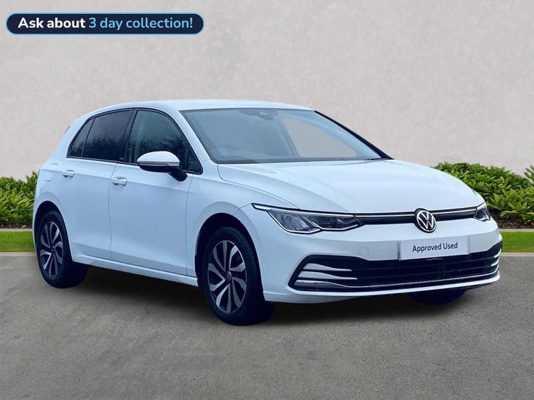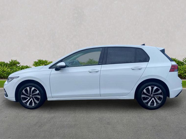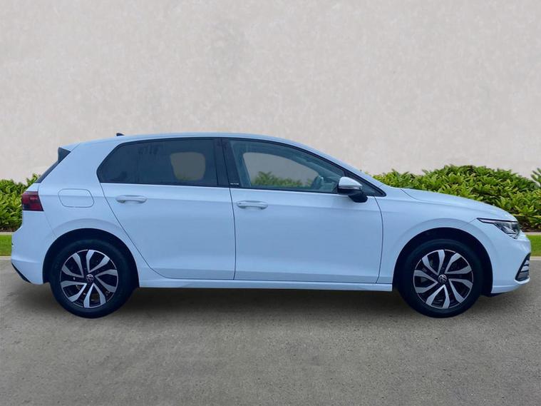 This Volkswagen Golf 8 Active 1.0 TSI offers a great balance of comfort, efficiency and modern technology, making it an excellent all-round family hatchback. Powered by the responsive 1.0 TSI petrol engine producing 110 PS and paired with a smooth 6-speed manual gearbox, it delivers confident performance with impressive fuel economy for everyday driving. Finished in Pure White, this Golf Active stands out subtly with its unique Active badging on the B-pillar, rear privacy glass and smart 16-inch Galway alloy wheels. The Active trim brings a slightly more upright seating position, enhancing comfort and visibility, particularly on longer journeys. Inside, the cabin is well finished in Titanium Black and Grey tones, complemented by the Active styling pack with special edition upholstery, brushed stainless steel pedals and decorative interior inserts. Front and rear carpet mats are fitted, while 30-colour ambient lighting creates a refined atmosphere, especially during night driving. Technology is a strong point, with the Discover Media navigation system providing satellite navigation, streaming and internet services, wireless App-Connect, dynamic road sign display and a clear touchscreen interface. A six-speaker audio system, radio and online connectivity ensure entertainment and information are always close at hand. Comfort and convenience are enhanced by 3-zone Air Care Climatronic climate control, allowing separate temperature settings for front and rear passengers. The Light & Sight Pack adds an auto-dimming rear-view mirror and rain-sensing wipers, while the Winter Pack includes heated front seats, a heated leather multifunction steering wheel and heated washer jets for colder mornings. Safety and driver assistance systems are comprehensive, featuring Adaptive Cruise Control with speed limiter, Front Assist with autonomous emergency braking for vehicles, pedestrians and cyclists, and Lane Assist for added motorway confidence. An anti-theft alarm system with interior monitoring and Keyless-Go central locking provides additional peace of mind. A well-equipped, comfortable and efficient hatchback with a strong specification, this Golf Active is perfectly suited to both daily commuting and longer trips. A great example of Volkswagen’s latest Golf generation and well worth viewing.