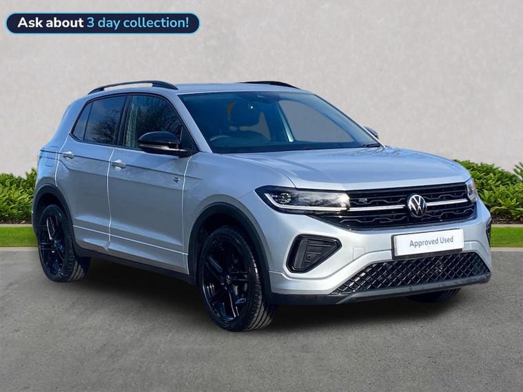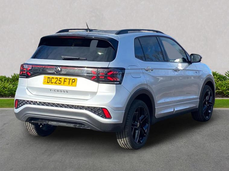 Finished in Reflex Silver Metallic with Grey and Titanium Black interior, this Volkswagen T-Cross Black Edition 1.0 TSI 115PS 6-speed Manual combines bold styling, advanced technology and everyday practicality in a compact SUV package. Powered by the lively 1.0 TSI petrol engine producing 115PS and paired with a smooth 6-speed manual gearbox, it delivers strong performance with impressive efficiency, making it equally suited to urban driving and longer motorway journeys. This Black Edition stands out with the Black Style styling package, featuring 18" York black alloy wheels, black mirror housings, black roof rails, black decorative trims and rear privacy glass (65% tinted from the B-pillar backwards). The contrasting black exterior details give the vehicle a sharper, sportier presence on the road. Inside, the Discover Media Navigation system includes Streaming and Internet, Wireless App-Connect, six speakers and an integrated e-SIM for online connectivity. Dynamic road sign display and the multifunction front-facing camera further enhance convenience and awareness while driving. The IQ.DRIVE package brings semi-automated driving assistance including Predictive Adaptive Cruise Control, Travel Assist and Lane Assist, helping to maintain speed, distance and lane positioning for added comfort and safety on longer journeys. Driving Profile Selection with ECO mode allows you to tailor the car’s response to suit your driving style. Lighting is a real highlight, thanks to IQ.Light LED Matrix headlights with Dynamic Light Assist, dynamic cornering function and animated indicators. LED rear tail lights with dynamic turn signals, illuminated styling elements in the front grille and advanced headlight range control provide both striking looks and enhanced visibility in all conditions. Comfort features include heated front seats, an auto-dimming rear-view mirror and rain sensor as part of the Lights and Sight pack. Security is taken care of with an anti-theft alarm system with interior protection, plus central locking with SAFELOCK and remote control folding keys. Stylish, well specified and packed with the latest driver assistance and lighting technology, this T-Cross Black Edition offers a premium feel in a practical and versatile compact SUV.