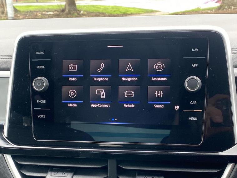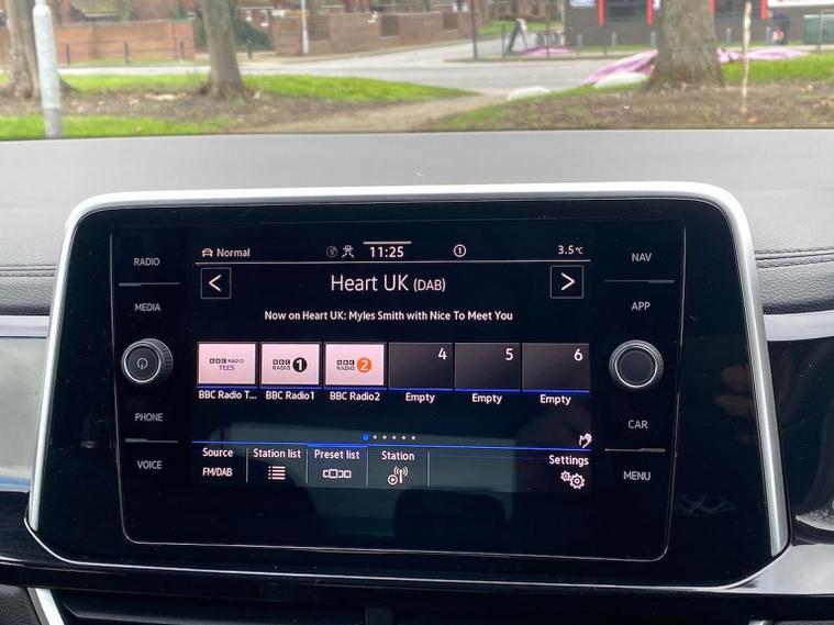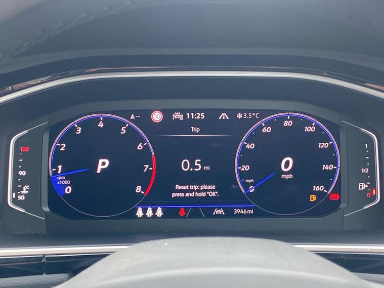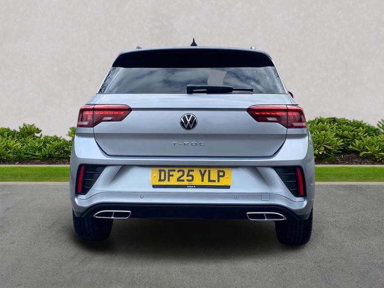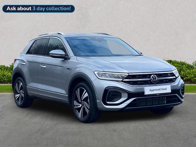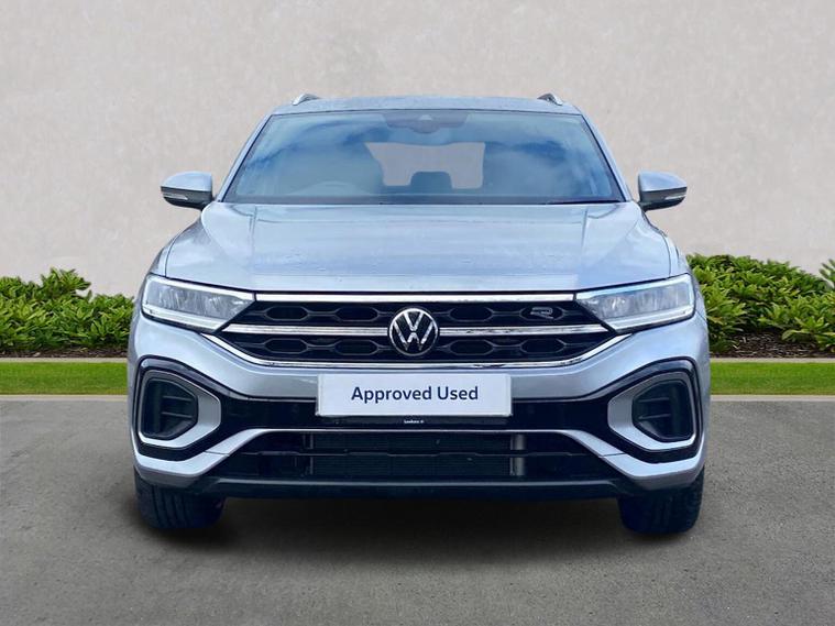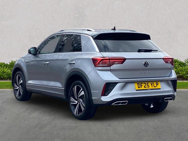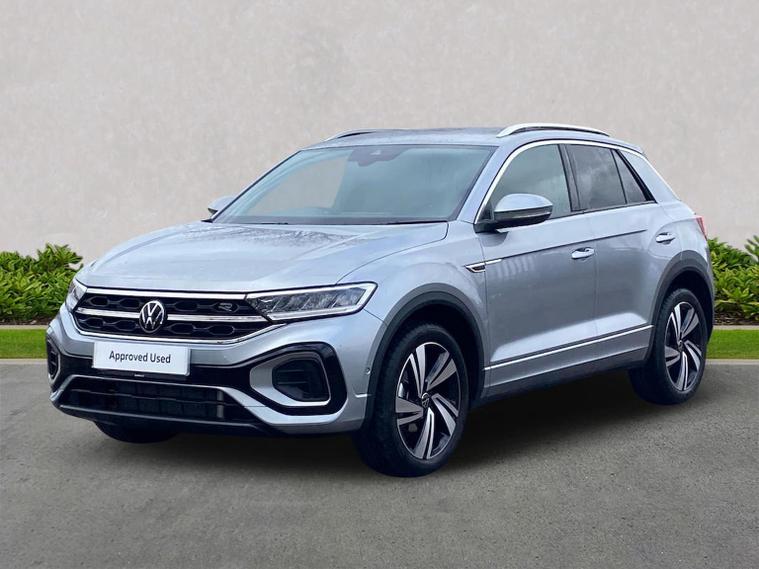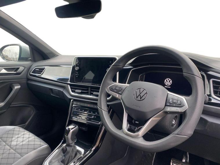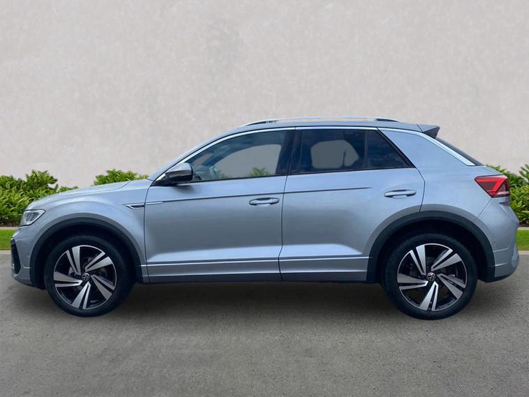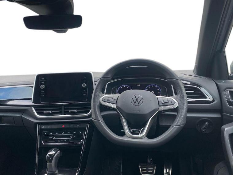 The Volkswagen T-Roc R-Line in Pyrite Silver Metallic with Soul-Flint Grey interior combines sporty aesthetics with advanced technology and versatile driving performance. Powered by a 1.5?TSI engine producing 150?PS and paired with a 7-speed DSG transmission, the T-Roc R-Line delivers smooth, responsive acceleration while maintaining efficiency. Its optional 18" ‘Nevada’ Black diamond-turned alloy wheels with low rolling resistance tyres enhance handling and give the SUV a bold, athletic stance. The Sports Pack adds dynamic features like sports suspension, progressive steering, driving profile selection, shock absorption tuning, and an ECO function, making the T-Roc feel agile and engaging on all road conditions. Infotainment is centered around the “Discover Media” Navigation system with Streaming and Internet, Wireless App-Connect, e-SIM connectivity, a multifunction front-facing camera, and 6-speaker audio for a connected and immersive in-car experience. The Driver Assistance Package integrates Adaptive Cruise Control (ACC), Front Assist with autonomous emergency braking, extended safety systems, multifunction camera support, and High Beam Assist, enhancing both convenience and safety. Additional practical features include the Winter Pack with heated front seats and washer fluid level indicator, plus a robust anti-theft system with SAFELOCK and a tool kit with jack for the spare wheel. Overall, the T-Roc R-Line blends sporty design, advanced driver assistance, and comfort features into a stylish, versatile compact SUV ideal for everyday driving and longer journeys.