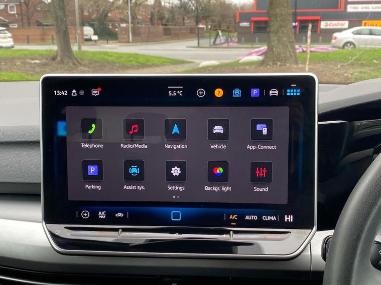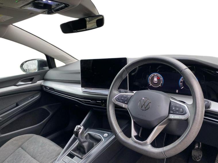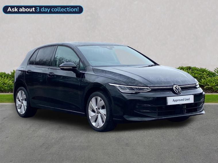 Golf Hatch Match 1.5 TSI 115PS 6-Speed Manual 5 Door finished in Deep Black Pearl Metallic with Soul Black interior. Powered by the strong and efficient 1.5 petrol engine producing 115PS and paired with a smooth 6-speed manual gearbox, this Golf delivers excellent performance while remaining economical and easy to drive in all conditions. Match trim offers a high level of standard specification including 17" Nottingham alloy wheels, rear tinted glass, Discover navigation system with large touchscreen display, Bluetooth connectivity, multifunction leather steering wheel and leather gearshift. Keyless Access with push-button start adds everyday convenience. Driver assistance and safety features include Adaptive Cruise Control with speed limiter, Front Assist with autonomous emergency braking for vehicles, pedestrians and cyclists, rear view camera, lane monitoring systems, and the Lights & Vision pack with automatic headlights, rain sensor, high beam assist and auto-dimming rear view mirror.