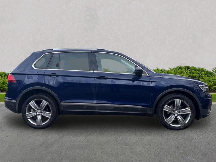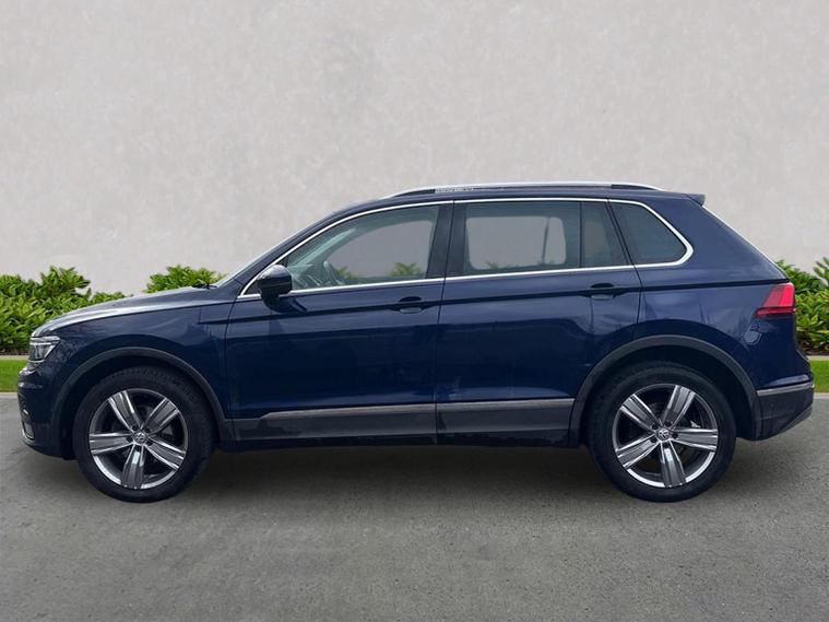 Premium family SUV in striking Atlantic Blue metallic – a sophisticated colour that turns heads with its deep, shimmering finish and complements the Tiguan's bold, refined lines perfectly. Inside, indulge in luxurious Vienna leather upholstery with heated front seats – sumptuously comfortable and premium to the touch. Features include power seat adjustment with memory for the driver's seat, power-adjustable lumbar support, foldable front passenger seat backrest, drawer under the passenger seat, and remote electrically foldable door mirrors with puddle lights and reverse-activated passenger mirror. The cabin feels upscale with leatherette door and side trim inserts. This top-spec SEL model is packed with desirable upgrades and technology: stunning 19" 'Victoria' alloy wheels, panoramic sunroof that floods the interior with light, LED headlights with Dynamic Light Assist, advanced high-beam control, and dynamic headlight control. Stay connected and informed with Discover Navigation system on an 8.0" colour touchscreen, Composition Media, wireless App-Connect with Media Control, Car-Net Security & Service, plus USB interface. Drive with confidence thanks to the Technology Pack and Winter Pack: Adaptive Cruise Control (ACC), Front Assist, Lane Assist, Traffic Sign Recognition with Dynamic Road Sign Display, rain sensor, auto-dimming interior mirror, automatic coming/leaving home lighting, and heated windscreen washer jets. Practicality is key – space-saver spare wheel with tool kit and jack, variable height-adjustable and removable boot floor. Powerful yet efficient 2.0 TDI diesel engine with 150PS, smooth 7-speed DSG automatic transmission, and 4Motion all-wheel drive for superior grip and handling in all conditions – ideal for family adventures or daily commutes. Atlantic Blue metallic on this loaded SEL Tiguan delivers executive style, advanced safety, and everyday luxury – a standout choice! View full vehicle specification and arrange a test drive today. This exceptional Tiguan won't hang around long!