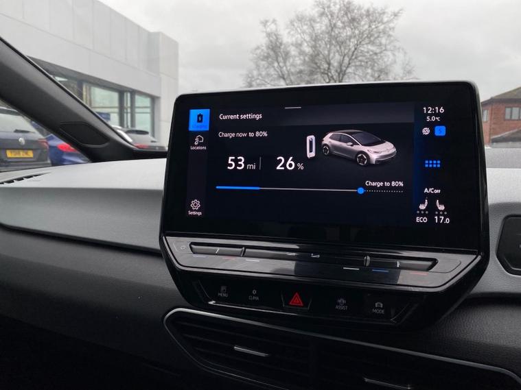 THE VOLKSWAGEN ID.3 FAMILY PRO 145 PS (58KWH) FEATURES A WLTP COMBINED RANGE OF APPROXIMATELY 257 TO 264 MILES (413-425 KM) ON A FULL CHARGE. THIS ELECTRIC HATCHBACK PROVIDES A 145 PS (107 KW) MOTOR WITH A 58 KWH USABLE BATTERY. GREAT STANDARD FEATURES INCLUDING SAT NAV, FRONT AND REAR PARKING SENSORS, ADAPTIVE CRUISE CONTROL, IQ MATRIX LED HEADLIGHTS, HEATED FRONT SEATS, HEATED STEERING WHEEL, PANORAMIC SUNROOF. FACTORY FITTED 18" EAST DERRY ALLOY WHEELS. SUPPLIED UNDER THE VOLKSWAGEN APPROVED USED PROGRAMME, PRIOR TO DELIVERY OUR FULLY QUALIFIED TECHNICIANS GIVE ALL VOLKSWAGEN APPROVED USED CARS A COMPREHENSIVE WORKSHOP INSPECTION WITH OVER 100 INDIVIDUAL CHECKS, FOLLOWED BY A ROAD TEST , A STATUS CHECK TO VALIDATE VEHICLE HISTORY, MILEAGE AND OUTSTANDING FINANCE. REST ASSURED ALL SERVICE WORK HAS BEEN COMPLETED IF DUE WITHIN 6 MONTHS AND COMES WITH 12 MONTHS VOLKSWAGEN NATIONAL WARRANTY, 12 MONTHS ROADSIDE ASSISTANCE AND FULLY HPI/SERVICE HISTORY CHECKED. SUPPLIED UNDER LOOKERS TRANSPARENT PRICING PROGRAM WHERE WE REGULARLY CHECK OUR PRICES AGAINST THE MARKET TO ENSURE OUR PRICES ARE COMPETITIVE SO WE CAN PASS ON THE VERY BEST DEALS TO YOU. VOLKSWAGEN NORTHALLERTON IS A MULTI AWARD WINNING OPERATION, CHECK OUR GOOGLE REVIEWS.