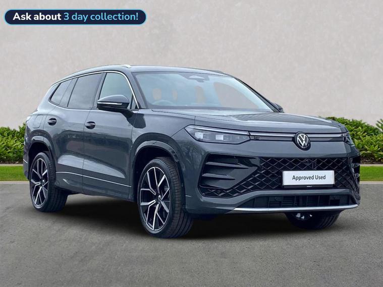 VERY HIGH SPEC 7 SEAT TAYRON IN THE TOP OF THE RANGE R LINE NEW MODEL WITH £3842 OF FACTORY FITTED USAVLW OPTIONS WHICH INCLUDE ... INFO PACKAGE PLUS inc HEADS UP DISPLAY ..INDUCTIVE SMARTPHONE CHARGING...15 INCHINFOTAIMENT DISPLAY IN COLOUR ... VOICE ASSIST WITH CHatGBT...4 USB PARTS 2 FRONT 2 REAR WITH UPGRADED CHARGING TO 45w... COMFORT AND CONVENIENCE PACK CONSISTING OF ...PARK ASSIST PRO HANDS FREE PARALLEL PARKING AID ...EASY OPEN/CLOSE POWER TAILGATE ...KEYLESS ENTRY DRIVERS ASSISTANCE PACKAGE inc AREA VIEW AND REAR VIEW CAMERAS...POWER FOLDING MIRRORS WITH MEMORY ...5 STAR EURO NCAP ..PROACTIVE PASSENGER PROTECTION SYSTEM..LANE , TARFFIC JAM AND EMEGENCY ASSIST SYSTEMS .. IQ HD MATRIX LIGHTS inc ENTRY AND EXIT LIGHTING ..HIGH RES MATRIX BEAM WITH DIGITAL PROJECTION ... LED REAR TAIL LIGHTS WITH DYNAMIC TURN SIGNALS.. FINISHED IN DOLPHIN GREY METALLIC THAT ADDS SYLE AND PRESENCE . A SPORTY SUV WITH TOP TIER SAFETY AND SMART TECHNOLOGY THE TAYRON DELIVERS IT ALL WITHOUT COMPROMISE ... SUPPLIED UNDER THE VOLKSWAGEN APPROVED USED PROGRAMME, PRIOR TO DELIVERY OUR FULLY QUALIFIED TECHNICIANS GIVE ALL VOLKSWAGEN APPROVED USED CARS A COMPREHENSIVE WORKSHOP INSPECTION WITH OVER 100 INDIVIDUAL CHECKS, FOLLOWED BY A ROAD TEST , A STATUS CHECK TO VALIDATE VEHICLE HISTORY, MILEAGE AND OUTSTANDING FINANCE. REST ASSURED ALL SERVICE WORK HAS BEEN COMPLETED IF DUE WITHIN 6 MONTHS AND COMES WITH 12 MONTHS VOLKSWAGEN NATIONAL WARRANTY, 12 MONTHS ROADSIDE ASSISTANCE AND FULLY HPI/SERVICE HISTORY CHECKED. SUPPLIED UNDER LOOKERS TRANSPARENT PRICING PROGRAM WHERE WE REGULARLY CHECK OUR PRICES AGAINST THE MARKET TO ENSURE OUR PRICES ARE COMPETITIVE SO WE CAN PASS ON THE VERY BEST DEALS TO YOU. VOLKSWAGEN NORTHALLERTON IS A MULTI AWARD WINNING OPERATION, CHECK OUR GOOGLE REVIEWS