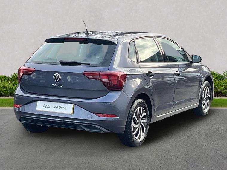 2024 Volkswagen Polo Life 1.0 TSI 95 PS with 7-speed DSG (5-door) — a well-rounded small hatch that’s practical, efficient and easy to live with: Smooth & efficient automatic 1.0 TSI 95 PS petrol engine with 7-speed DSG automatic — good daily performance with a relaxed driving feel and easy city commuting. 0–62 mph around , 11.5 s — decent acceleration for everyday driving. Strong torque (175 Nm) for a small engine aids responsiveness around town and on A-roads. Good fuel economy Official combined fuel use around , 50–53 mpg (WLTP), making it economical to run. Class-leading boot & cabin Boot capacity , 351 litres, generous for the supermini class — easily swallows weekly shopping or luggage. Flexible interior with comfortable seating for five adults and decent rear legroom for the size. Small external dimensions and a tight turning circle make it easy to park and navigate urban streets. DAB digital radio and trip computer for modern infotainment basics. USB-C charging points and connectivity make daily use more convenient. Practical touches like rain-sensing wipers and automatic lights on many examples add convenience. Standard safety kit includes Front Assist emergency braking, ESC, Hill Hold Control, ISOFIX child seat mounts. Good insurance group (around 9E in the UK) helps keep premiums reasonable. Comfortable suspension and low noise levels make it pleasant on longer drives too, not just around town. Solid build quality and premium feel relative to many rivals — Polo is often praised for this. BEST BITS: ? Balanced everyday hatch: good blend of comfort, efficiency, practicality and daily usability. ? Easy to drive: smooth DSG gearbox and light steering make it ideal for city and suburban use. ? Low running costs: strong economy and insurance figures keep ownership affordable. THIS VEHICLE IS INCLUDED IN THE LOOKERS TRANSPARANT PRICING PROGRAMME. "The Lookers Transparent Pricing Policy– This means that we track the ever-moving used car market closely, so our prices may go up or down to reflect current trends."