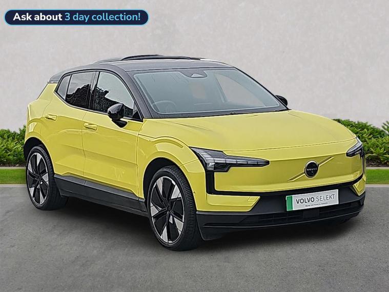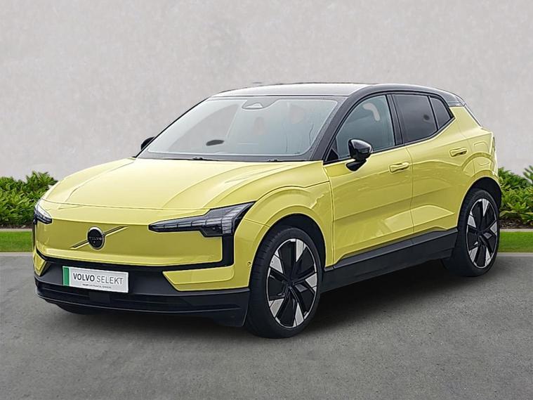 Volvo Stockport is proud to offer this 2025 Volvo EX30 Twin Motor Performance Ultra finished in Moss Yellow with Indigo interior. Specification includes Google automotive services, 360 degree camera, panoramic roof, privacy glass, wireless phone charging, keyless entry, electrically adjustable front seats with memory positioning, heated seats, heated steering wheel plus much more! Why choose us? Well at Lookers Volvo Stockport all our cars are hand-picked and available to test drive at our fantastic Retail Showroom on St Mary's Way, every vehicle we offer must go through a multi-point check with over 100 individual items being scrutinised to ensure the quality of the vehicle, with only genuine Volvo parts being fitted by fully qualified Volvo Technicians. In addition to this, for your peace of mind we are delighted to offer our cars as Volvo SELEKT Approved for your peace of mind with gives the following benefits: • A comprehensive, Manufacturer-backed, unlimited mileage warranty • MOT Test Insurance • Volvo Selekt Assistance including Homestart, Recovery and European cover • Experian & HPI Vehicle history check, including mileage and history confirmation certificates • Latest software upgrades • 30 Day/1500 mile Exchange Policy (terms & conditions apply) So you can rest assured, with our highly trained Technicians and knowledgeable team, you really are in great hands with us here at Lookers Volvo Stockport. We look forward to seeing you soon, if you would like any further information or would like to book a test drive, please contact us on 01619702325.