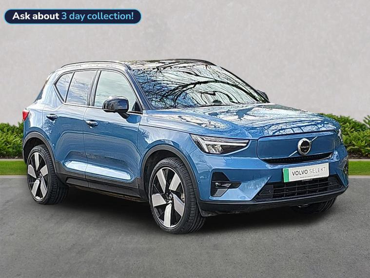 Volvo Stockport is proud to offer this 2022 Volvo XC40 B4 Ultimate Dark Recharge finished in Fford Blue with Charcoal interior. Specification includes Google automotive services, panoramic roof, 360 degree camera, heated seats, heated steering wheel, keyless entry, BLIS, power tailgate lid, electrically operated front seats with memory positioning plus much more! Why choose us? Well at Lookers Volvo Stockport all our cars are hand-picked and available to test drive at our fantastic Retail Showroom on St Mary's Way, every vehicle we offer must go through a multi-point check with over 100 individual items being scrutinised to ensure the quality of the vehicle, with only genuine Volvo parts being fitted by fully qualified Volvo Technicians. In addition to this, for your peace of mind we are delighted to offer our cars as Volvo SELEKT Approved for your peace of mind with gives the following benefits: • A comprehensive, Manufacturer-backed, unlimited mileage warranty • MOT Test Insurance • Volvo Selekt Assistance including Homestart, Recovery and European cover • Experian & HPI Vehicle history check, including mileage and history confirmation certificates • Latest software upgrades • 30 Day/1500 mile Exchange Policy (terms & conditions apply) So you can rest assured, with our highly trained Technicians and knowledgeable team, you really are in great hands with us here at Lookers Volvo Stockport. We look forward to seeing you soon, if you would like any further information or would like to book a test drive, please contact us on 01619702325.