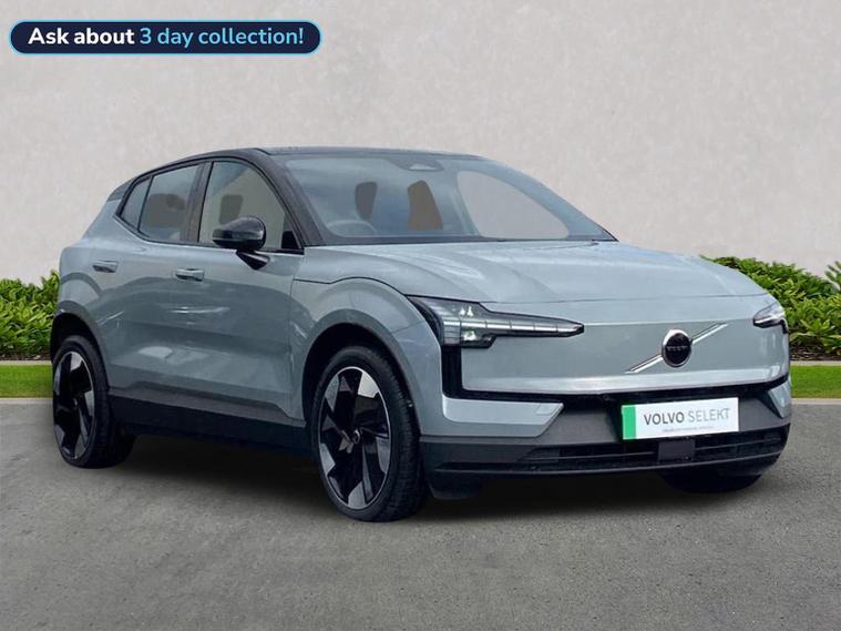 Step into the Volvo EX30 200kW SM Extended Range Plus, an all-electric SUV designed to make every journey feel effortless. Its extended-range battery and smooth rear-wheel drive deliver confident performance, supported by one-pedal drive, adaptive cruise control and a comfort chassis for relaxed everyday driving. Safety is at the heart of the EX30, with BLIS, Intersection Autobrake, Pedestrian and Cyclist Avoidance, Lane Keeping Aid and Pilot Assist working together to give outstanding reassurance. Inside, the minimalist cabin features a 12.3-inch display with Google built-in, Harman Kardon Premium Sound, wireless phone charging and heated front seats trimmed in smart Textile and Nordico upholstery. Practical touches such as a front load compartment, flexible load floor, removable rear storage box and power tailgate ensure the EX30 fits seamlessly into daily life, while 19-inch glossy black diamond-cut alloys and LED lighting create a striking finish. At Lookers Volvo Glasgow, every pre-owned Selekt vehicle is hand-picked, fully inspected and prepared by Volvo-trained technicians for complete peace of mind. Visit our Hillington showroom for expert guidance and an enjoyable test-drive experience. For more information or to arrange a viewing, call 01417602192.