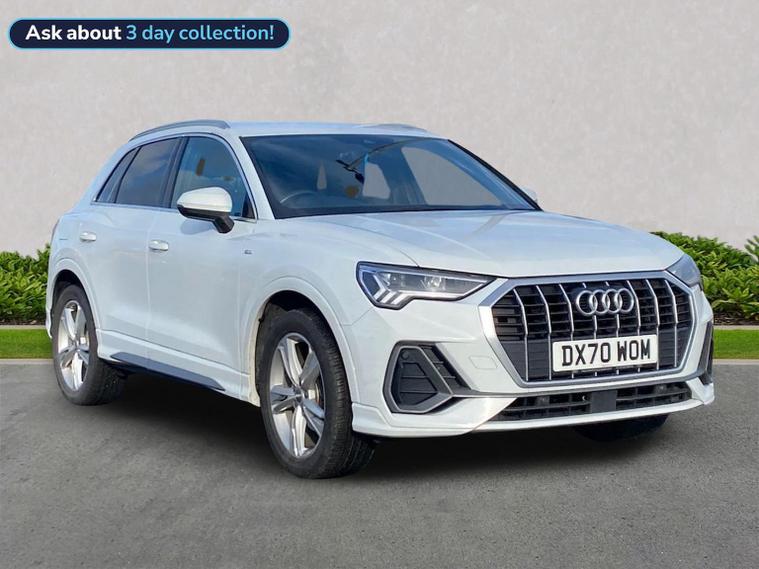***FULL AUDI MAIN DEALER SERVICE HISTORY / EX-MOTABILITY CAR WHICH HAS BEEN VERY WELL LOOKED AFTER*** S line Specification | 1.5 TFSI CoD Petrol | Manual Gearbox | Sport Styling | LED Headlights | Satellite Navigation | Digital Cockpit | Rear Parking Sensors | Cruise Control | Dual-Zone Climate Control | Bluetooth Connectivity | Apple CarPlay & Android Auto. This 2021 Audi Q3 1.5 TFSI S line offers premium quality, sharp styling and refined everyday comfort in a practical mid-size SUV. With its sporty S line design, efficient petrol engine and high-quality interior, it delivers an excellent blend of style, performance and usability for family life or daily commuting. The 1.5 TFSI CoD (Cylinder-on-Demand) engine provides smooth and efficient performance, seamlessly switching between four- and two-cylinder operation to maximise fuel economy. Paired with a precise manual gearbox, the Q3 feels responsive and controlled, while the elevated driving position and well-balanced suspension contribute to a confident, comfortable drive. Inside, the S line trim enhances the cabin with sporty touches and high-grade materials. The Audi Digital Cockpit, large infotainment screen and satellite navigation give the Q3 a modern, premium feel, while smartphone integration through Apple CarPlay and Android Auto ensures seamless connectivity. Convenience features such as cruise control, dual-zone climate control, LED headlights and rear parking sensors make everyday driving easy and enjoyable. Practicality is a strong point of the Q3, offering generous interior space, comfortable seating and a versatile boot that’s ideal for family duties, travel or weekends away. The high-quality build and refined road manners make it a superb all-round SUV. Stylish, efficient and packed with premium features, this Audi Q3 S line delivers a refined driving experience with excellent everyday usability. Enquire today to arrange a viewing or test drive. Finance options available Supplied with a comprehensive 3 month RAC warranty with breakdown assistance which car be extended to up to 4 years, fully inspected through our workshops with a service and new MOT if required, an HPI gold check, professional valet and with no admin fees to pay. We can organise nationwide delivery or you can use our click and collect facility which is an online deposit of £250 and collect from our showroom here in South Shields, Newcastle Upon Tyne, just off the A19! Please call now for more information and a personalised video showing you your next car! 01913252013 "Unless otherwise stated, vehicles may have previously been used for business or hire purposes and so may have had multiple users. Where we hold documents relating to vehicle history, these are available for inspection on request.”