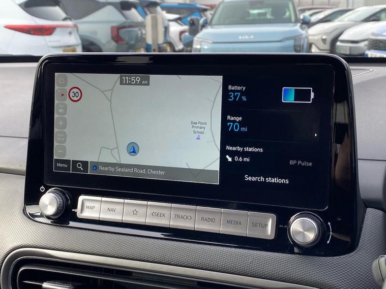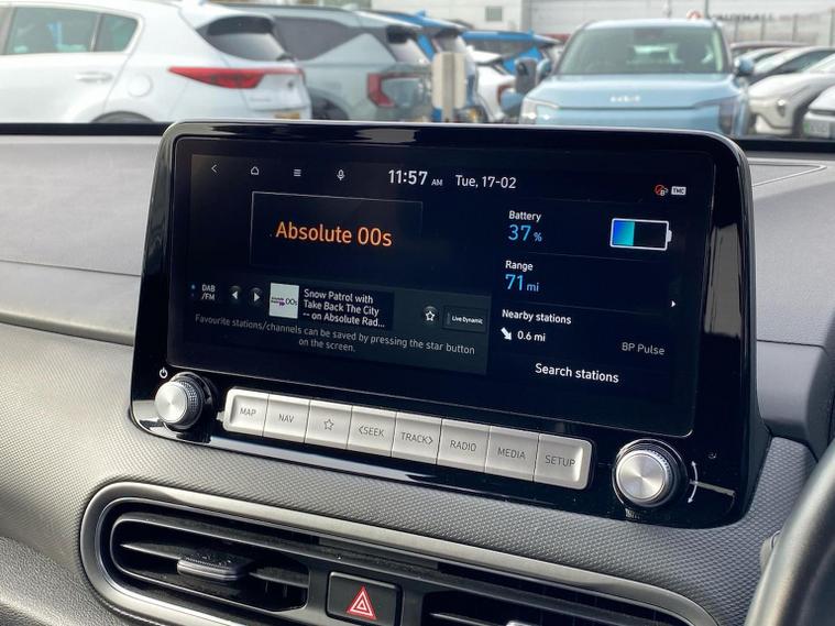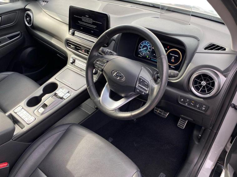 Hyundai Kona 150kW Ultimate 64kWh 5-Dr Auto Hatchback Ultimate, offering a real-world range of around 280–300 miles from its capable 64 kWh battery and smooth, responsive 150 kW electric power. With DC charging you can top up quickly on longer trips, and typical home charging on UK electricity tariffs usually costs only around £5 for a near-full charge, keeping your running costs ultra-low compared with petrol or diesel. This well-specified Ultimate trim delivers comfort, tech and practicality in a compact package — quiet to drive, cheap to run and ideal for everyday motoring in the UK.