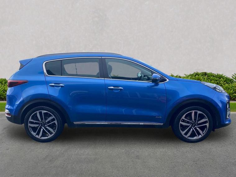 Here at Lookers Kia Chester we have this lovely example of the Kia Sportage '4' finished in Blue flame, contrasting with full faux black leather interior The '4' has a fantastic specification, Built in navigation system, front and rear parking sensors incorporating a reversing camera and coloured distance sensors displayed on the infotainment screen. Xenon headlights, front wiper de icer, and a panoramic sunroof! Front and rear heated outer seats. With a fantastic combined Miles per Gallon figure of over 45MPG it truly is a superb SUV. This particular model has side steps, which compliment the cars bold and stylish looks. If you should wish to ask any further questions regarding specification or anything else, please contact our dedicated sales team on 01244642178.