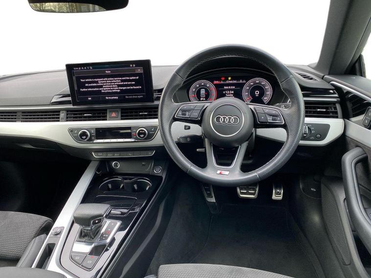 Reference: BP21OYA. Farnborough Audi are offering a rare opportunity to own this AUDI A5 35 S-LINE 5DR S-TRONIC 150PS. This excellent example has full service history, has been prepared for sale by our fully trained, experienced and skilled technicians passing our exacting pre sale checks and is ready to go. ===================================================================== Stylish and sporty, the A5 balances athletic design with comfort and performance. A perfect blend of elegance and excitement for drivers wanting more flair than a traditional sedan.Standard features on this car include Integrated SATELLITE NAVIGATION with real-time routing and traffic updates. SATELLITE NAVIGATION via APPLE CAR PLAY which allows integration using apps like Maps to help manage your journeys. FULL LEATHER delivering a luxury feel in the cabin. CLIMATE CONTROL which automatically regulates cabin temperature for you. VIRTUAL COCKPIT so that you can customise the digital dashboard with maps, gauges, and media. CRUISE CONTROL to maintain a steady speed without constant pedal input. REAR PARKING SENSORS to warn of objects behind while reversing. HEATED FRONT SEATS to keep your comfortable in cold weather conditions. Plus lots more. ===================================================================== 150 MULTI POINT CHECK | AUDI PARTS |FACTORY TRAINED TECHNICIANS 12 MONTH MANUFACTURER BACKED WARRANTY & ROADSIDE ASSISTANCE. AUDI CONNECTED|HISTORY CHECKS ===================================================================== Lookers are an authorised representative for a wide range of award-winning car manufacturers, providing you with an unparalleled choice of quality and approved used cars, currently for sale. Our exceptional standards ensure you receive the best possible service when you purchase with us, ensuring peace of mind when you drive away with your new vehicle. With us representing so many great brands we are an excellent position to offer you a fair and transparent price for your part exchange. At Lookers, we care about our customers and want to ensure that the price you see is the price you pay. Our Transparent pricing policy simply means, honest, straightforward pricing offering our vehicles at the best price possible; ensuring no haggling or hassle for you.
