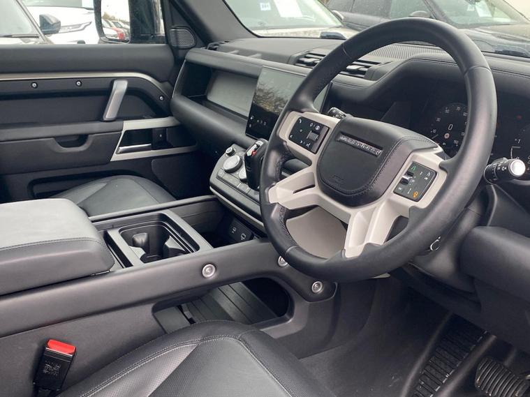 This 2024 Land Rover Defender 110 D300 X Dynamic HSE is a Land Rover manufacturer approved vehicle with a full service history and only one owner from new. It features a powerful 3.0L Diesel engine, a Four Wheel Drive drivetrain, and meets Euro 6 emission standards. This model comes equipped with the X Dynamic HSE trim, a Family Pack including climate control, an Extended Black Exterior Pack an Electrically Deployable Tow Bar, Air Suspension Pack and a Secure Tracker Pro subscription valid for 12 months from new. It also boasts 20 inch Gloss Black alloy wheels and a Cold Climate Pack for added comfort. With a substantial towing weight of 3500 kg and impressive acceleration from 0 to 60 mph in just 6.6 seconds, this Defender 110 offers both capability and performance. The large boot space makes it exceptionally practical for families and adventurers alike. Furthermore, its placement in a low insurance group indicates that running costs are kept competitive compared to similar vehicles, making it a sensible choice for everyday use and demanding journeys.