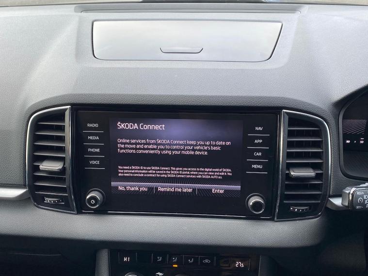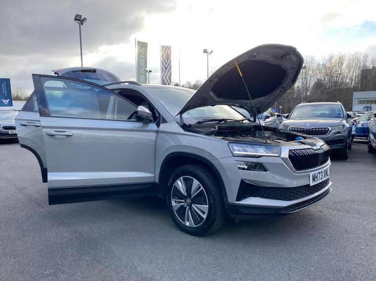 Finished in Meteor Grey, this ŠKODA Karoq SE Drive 2.0 TDI is a practical and efficient SUV offering strong diesel performance, excellent comfort and a well-rounded specification. It comes equipped with Amundsen satellite navigation, Apple CarPlay and Android Auto via SmartLink, Bluetooth, DAB radio, USB-C ports and an 8-inch digital driver display. Inside you’ll also find dual-zone climate control, leather multifunction steering wheel, front centre armrest, keyless start, interior noise suppression, folding rear seats and a versatile boot with double-sided floor and cargo features. Driver assistance and safety systems include cruise control with speed limiter, rear parking sensors, tyre pressure monitoring, driver fatigue alert, front assist emergency braking, ISOFIX child-seat points front and rear, electronic parking brake with auto hold, alarm system and multiple airbags. Exterior highlights include 17-inch alloy wheels, LED headlights and rear lights, front fog lamps, black roof rails, privacy glass, heated folding door mirrors and front and rear electric windows. Test drives are welcome, a personalised walk-around video can be provided on request and home delivery is available for added convenience. Competitive finance packages can also be arranged — speak to the team for a tailored quotation to suit your budget. Contact us today to arrange your viewing or reserve this vehicle.