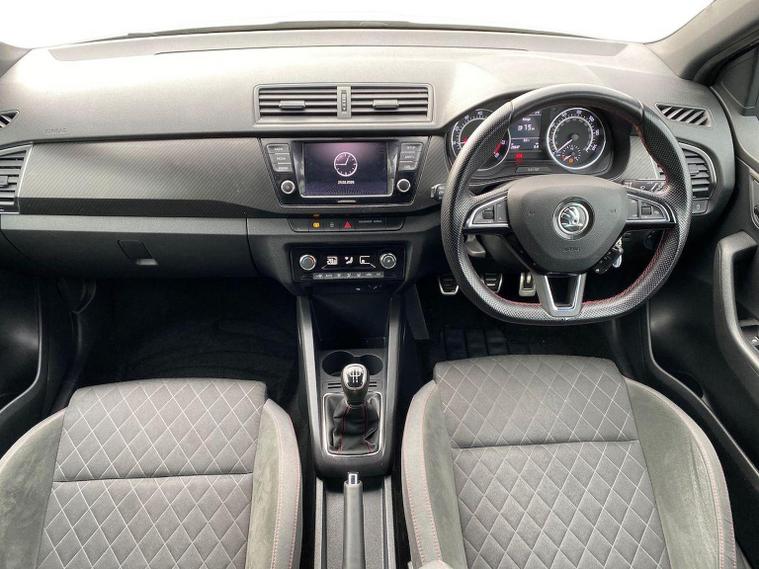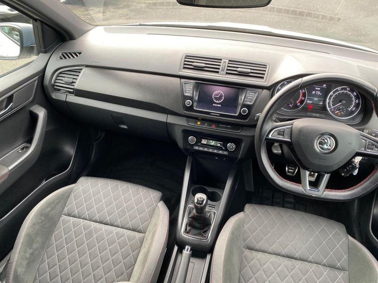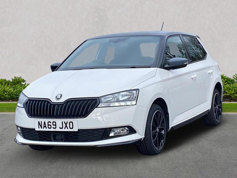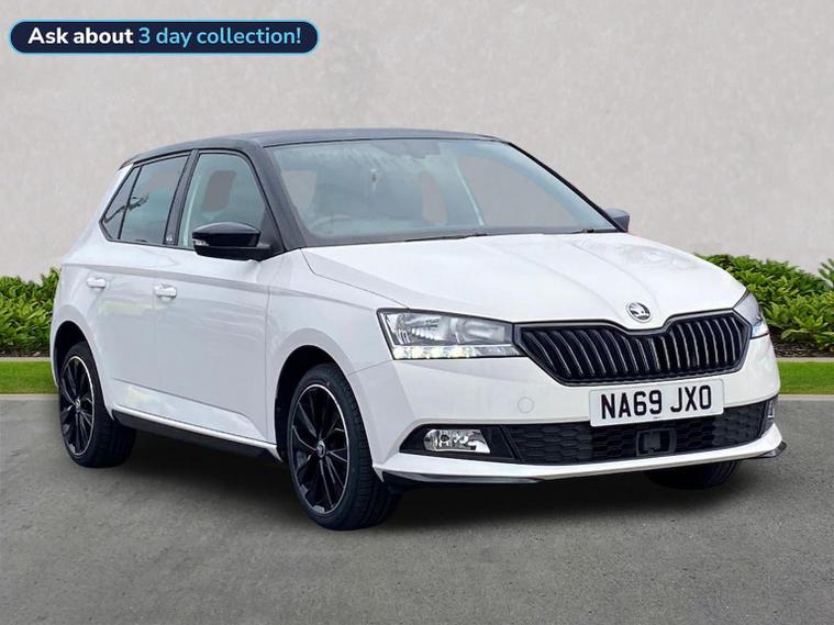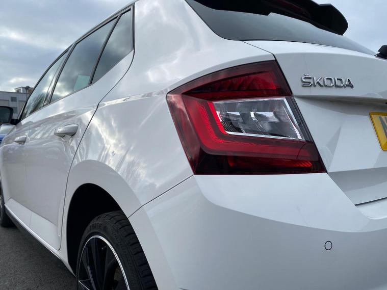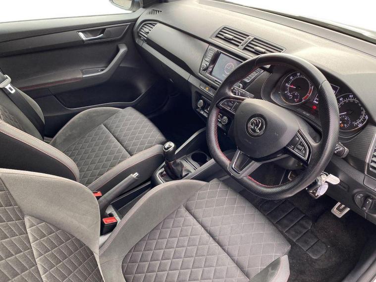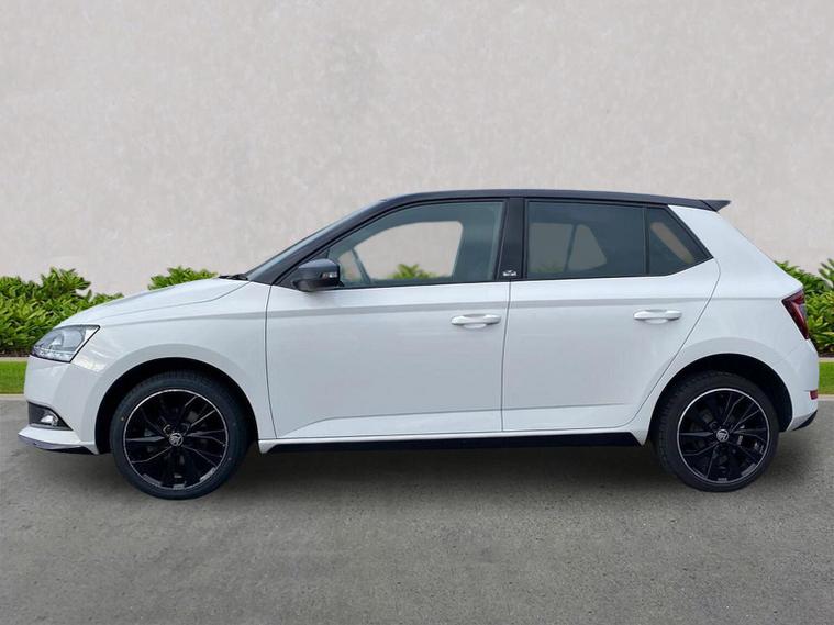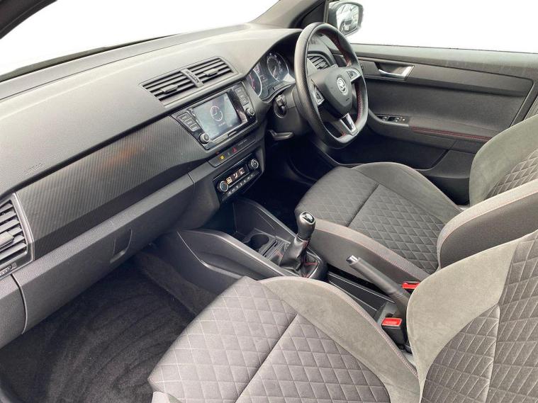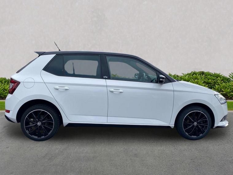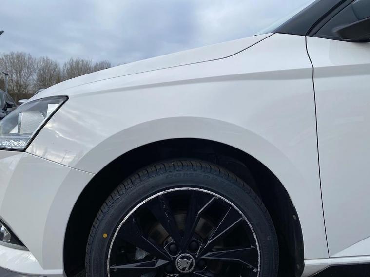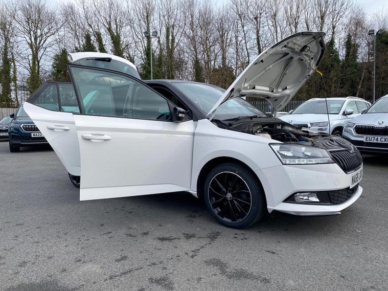 This Škoda Fabia Monte Carlo 1.0 TSI 95PS in Candy White with Black Magic Pearl Effect roof and Frome Agate/Onyx interior features optional Microsuede/Satin Black upholstery with Alcantara seat trim and includes Monte Carlo exterior styling with black roof, black grille, black mirrors, rear diffuser, rear spoiler, privacy glass and 16" black Italia alloy wheels. Standard equipment includes DAB radio, Radio Swing Plus, SmartLink Plus, rear parking sensors, multifunction trip computer and tyre pressure monitoring. It also comes with LED daytime running lights, LED rear combination lamps, front fog lights, electrically adjustable heated door mirrors, front and rear electric windows and Monte Carlo badging. Inside it offers climate control air conditioning, sports front seats with carbon-style bolsters, height-adjustable driver and passenger seats, sports leather multifunction steering wheel with red stitching, leather gear and handbrake trim, textile floor mats, black centre console, Monte Carlo door sill inserts, front and rear interior lights, umbrella under the passenger seat, luggage hooks in the boot, vanity mirrors and height/reach adjustable steering wheel. Safety features include front, side and curtain airbags, passenger airbag deactivation, ABS, ESC, Front Assist, seatbelt reminders and ISOFIX on the outer rear seats. We offer in-person appointments, personal video appointments, test drives and finance options.