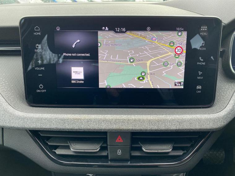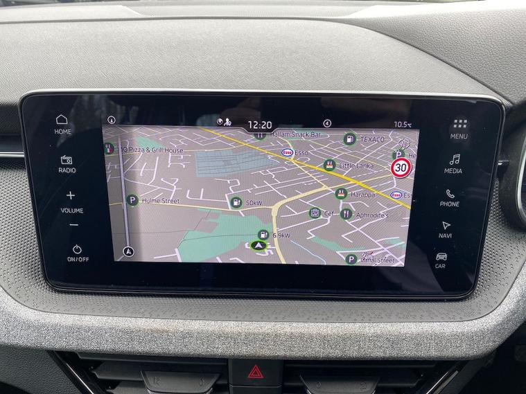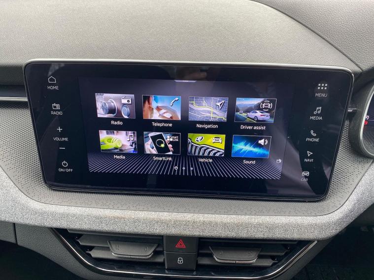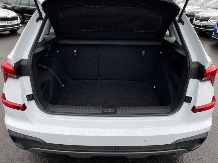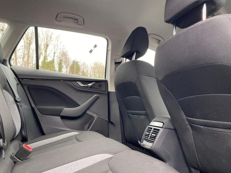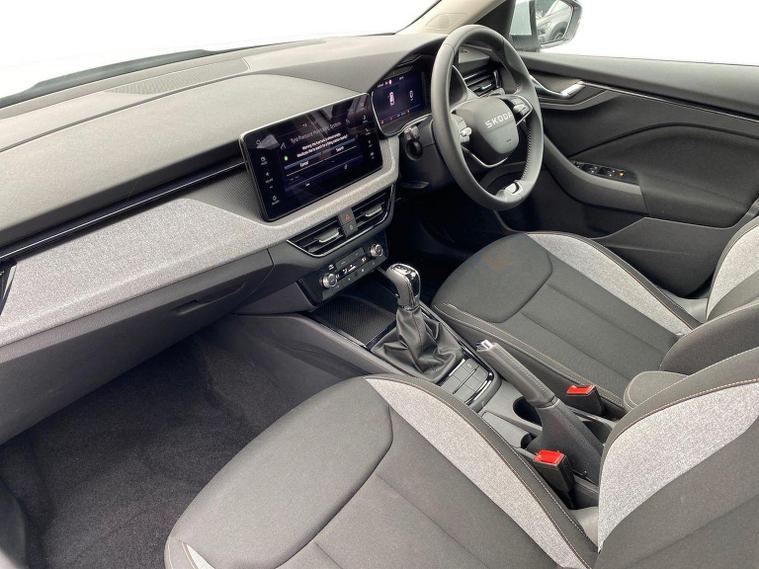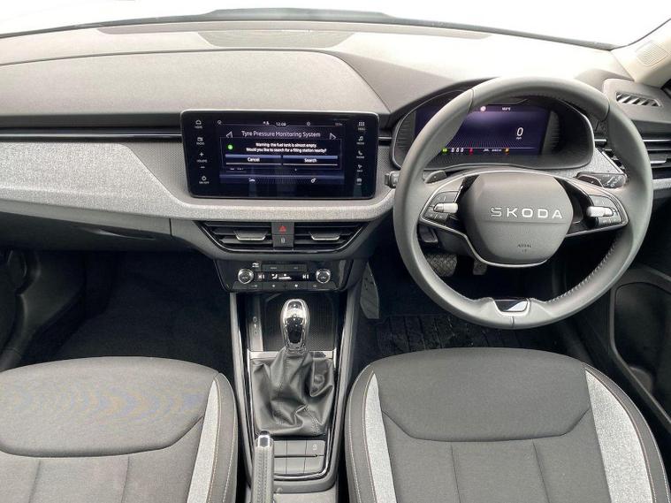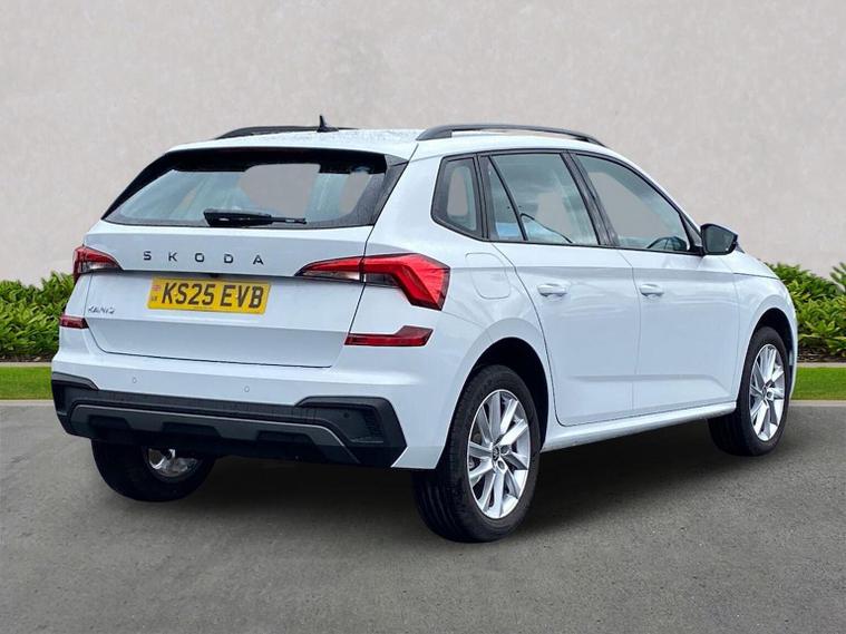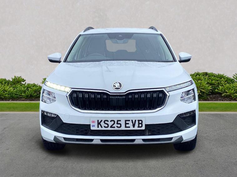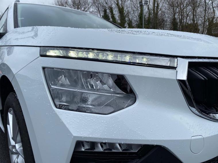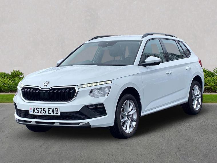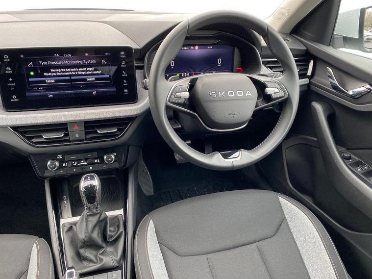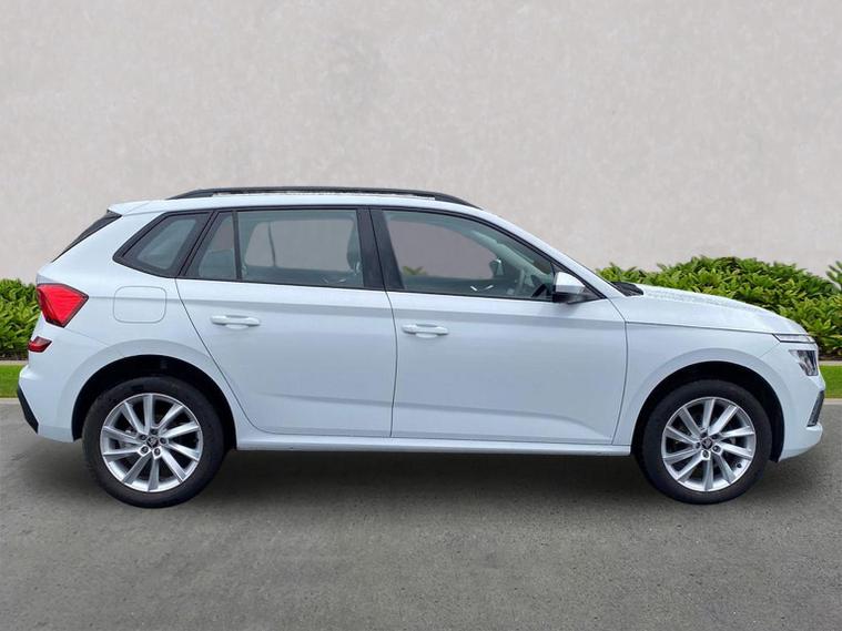 This Škoda Kamiq SE Edition 1.5 TSI 150PS DSG in Moon White Metallic with Loft interior includes the Edition Package, adding the 9.2" Škoda navigation system, wireless SmartLink, 8 speakers, virtual cockpit with 10.25" display, rear view camera, web radio, Care Connect with Infotainment Online and voice control. It also features the optional steel space-saving spare wheel with toolkit. Standard equipment includes DAB radio, Bluetooth, Emergency Call, four USB-C ports, front and rear electric windows, heated rear window, electrically adjustable heated door mirrors, cruise control with speed limiter, rear parking sensors, tyre pressure monitoring, Traffic Sign Recognition, LED headlights, LED tail lights, fog lights, 17" alloy wheels, black roof rails and a tyre repair kit. Inside it offers dual-zone climate control, a two-spoke leather multifunction steering wheel, illuminated glovebox, front centre armrest, height-adjustable front seats with manual lumbar support, overhead glasses holder, textile floor mats, rear seat pockets, cargo elements, net package with top tether hooks, ticket holder on the windscreen and an umbrella in the driver’s door. Safety equipment includes front, side and curtain airbags, passenger airbag deactivation, Front Assist, Lane Assist, Hill Hold Control, ISOFIX on the front passenger seat and rear seats, alarm with SAFE function and seatbelt reminders. We offer in-person appointments, personal video appointments, test drives and finance options.