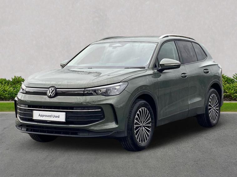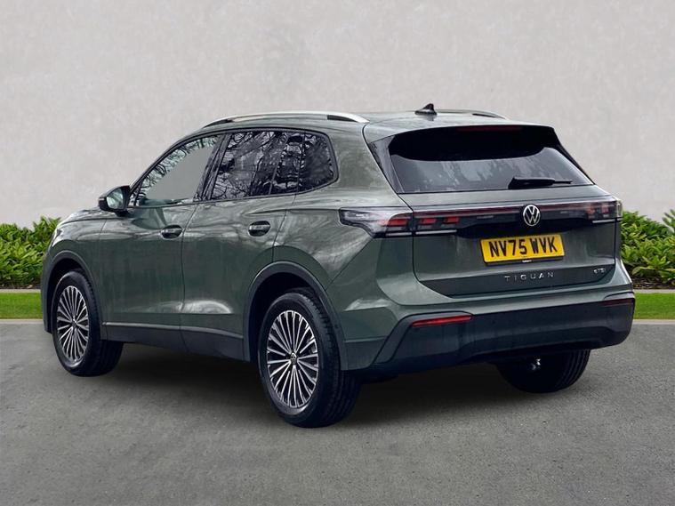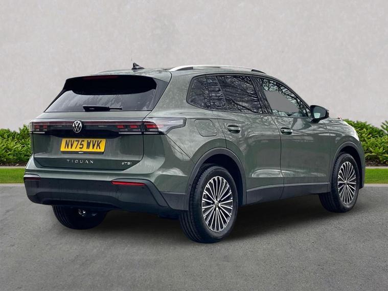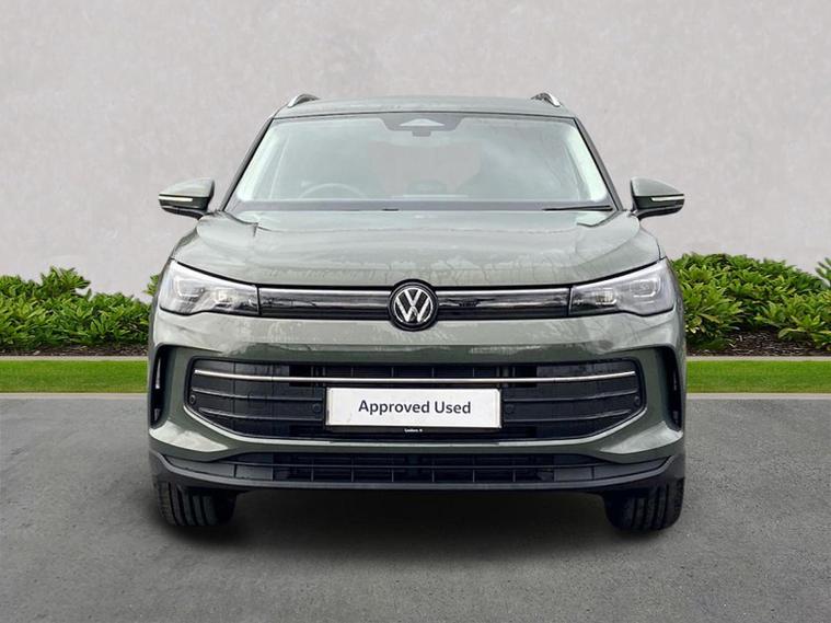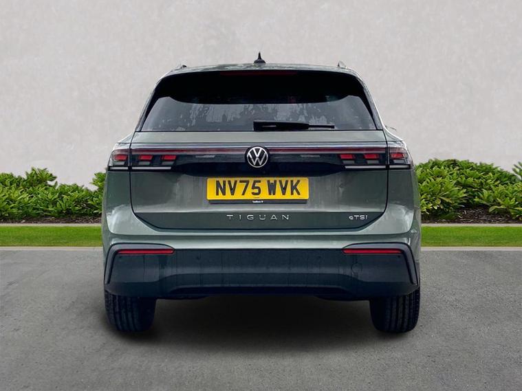 The Volkswagen Tiguan Match 1.5 eTSI 150PS DSG is a highly equipped, refined and impressively advanced family SUV, finished in the striking Cipressino Green Metallic with a Melange-Soul interior. Its 1.5-litre eTSI mild-hybrid petrol engine produces 150PS and works seamlessly with the smooth 7-speed DSG automatic gearbox, delivering quiet, effortless performance and enhanced efficiency. The combination of mild-hybrid assistance and DSG refinement makes this Tiguan exceptionally relaxing to drive in both town and motorway conditions. This Match model is elevated further by the Design Package, adding silver roof rails, distinctive 90% tinted laminated rear safety glass and a series of premium exterior details. The car also sits on striking 18-inch Napoli alloy wheels finished in black with a diamond-turned surface, fitted with 235/55 R18 tyres and secured with anti-theft wheel bolts. The electric tailgate with Easy Open & Close functionality adds everyday convenience, while the Keyless Entry system ensures easy access without removing the key from your pocket. Inside, comfort is enhanced with the optional Winter Pack, offering heated front seats and a heated, leather-wrapped multifunction steering wheel with shift paddles. The cabin is further lifted by the Light Package, which includes LED headlamps with dynamic cornering functionality, a signature LED running light, illuminated door handle recesses, illuminated front and rear logos and 3D LED rear lamps. Interior ambient lighting with ten selectable colours adds an upmarket and modern feel. Technology is another major highlight. The Discover Media navigation system includes streaming and internet capability, an IDA voice assistant, wireless charging, four USB-C ports (including two high-output rear charging sockets) and high-quality connected infotainment. Smartphone integration is seamless thanks to Wireless App-Connect, and inductive charging keeps devices powered without cables. Safety and driver assistance systems are exceptionally comprehensive. The Safety Package includes Adaptive Cruise Control, Autonomous Emergency Braking with pedestrian and cyclist monitoring, oncoming vehicle braking with swerve support, a rear-view camera system, a multifunction front-facing camera for distance control, predictive speed limiter, dynamic road sign display, Lane Assist, Side Assist with Rear Traffic Alert and an exit warning system. ISOFIX mounting points on the outer rear seats and front passenger seat, along with rear side airbags, ensure strong family-friendly safety credentials. The Match model also benefits from Park Assist Pro with Park Distance Control, enabling remote parking capability and memory functions for frequently used parking manoeuvres, taking convenience to another level. Overall, the Tiguan Match 1.5 eTSI DSG offers an exceptional blend of refinement, practicality, advanced technology and premium comfort. With its standout colour, generous specification, smooth hybrid-assisted drivet