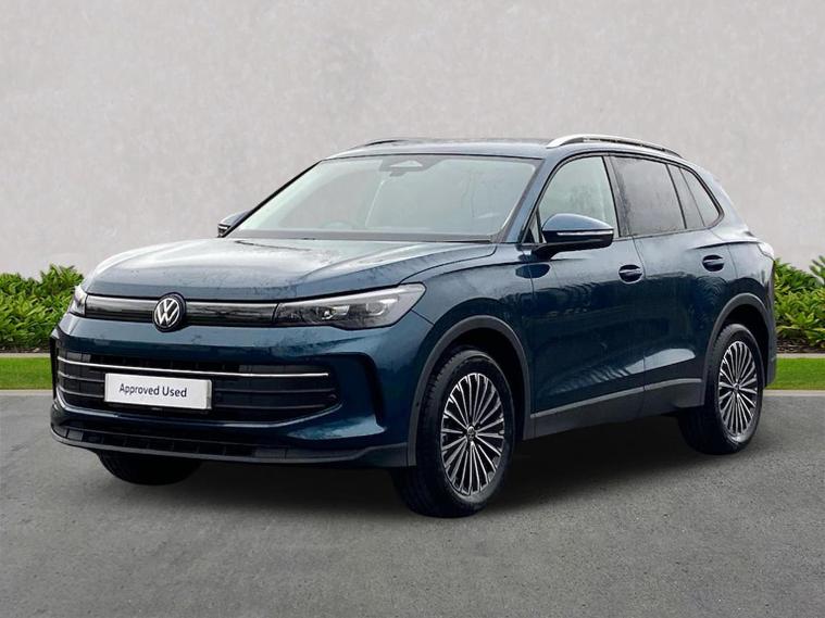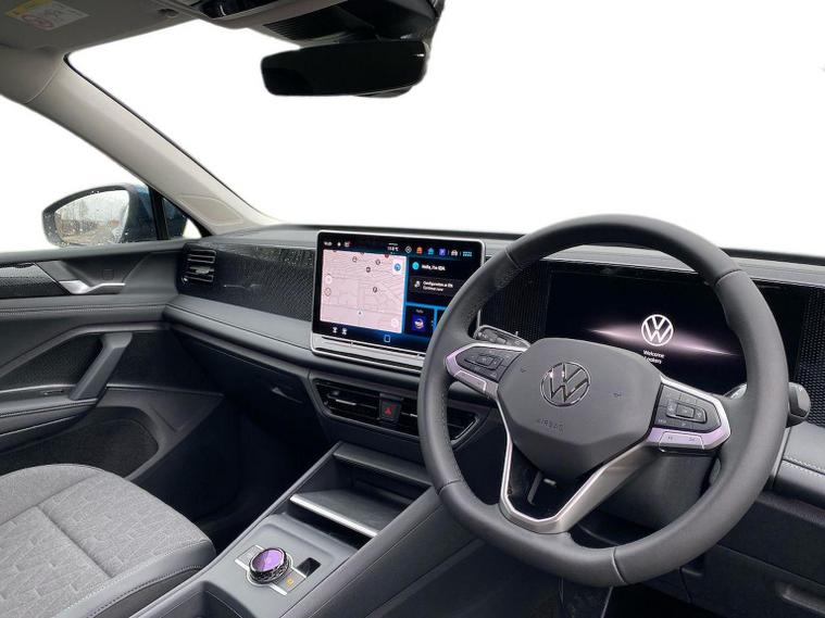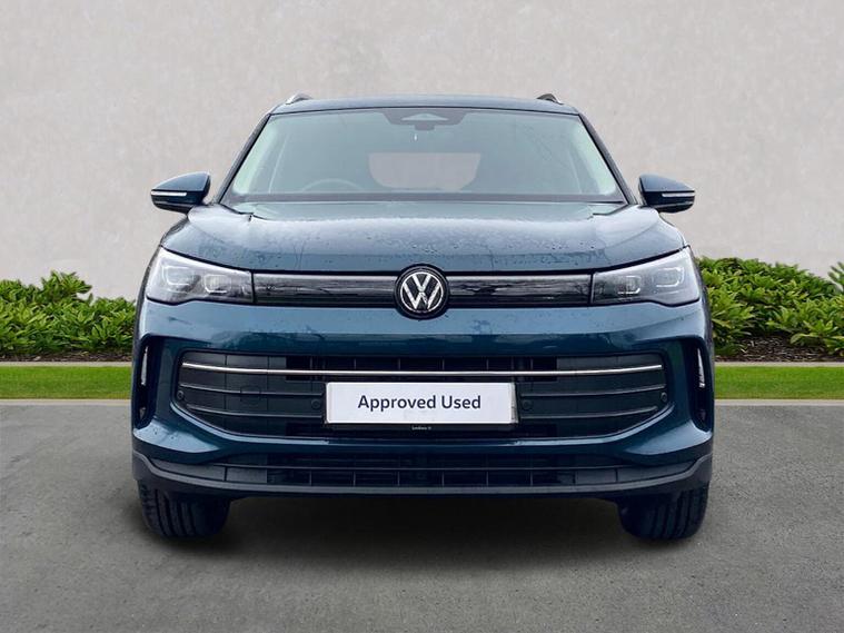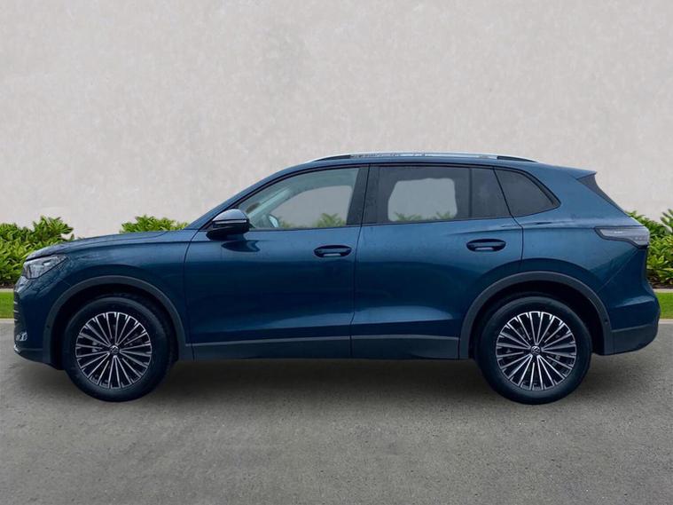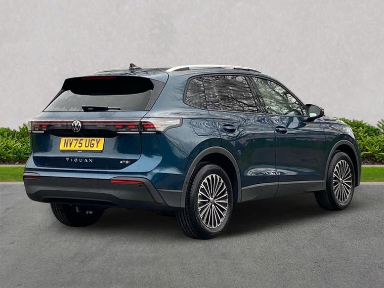 The Volkswagen Tiguan Match 1.5 eTSI 150PS DSG is a highly equipped, refined and impressively advanced family SUV, finished in the striking Nightshade Blue Metallic with a Melange-Soul interior. Its 1.5-litre eTSI mild-hybrid petrol engine produces 150PS and works seamlessly with the smooth 7-speed DSG automatic gearbox, delivering quiet, effortless performance and enhanced efficiency. The combination of mild-hybrid assistance and DSG refinement makes this Tiguan exceptionally relaxing to drive in both town and motorway conditions. This Match model is elevated further by the Design Package, adding silver roof rails, distinctive 90% tinted laminated rear safety glass and a series of premium exterior details. The car also sits on striking 18-inch Napoli alloy wheels finished in black with a diamond-turned surface, fitted with 235/55 R18 tyres and secured with anti-theft wheel bolts. The electric tailgate with Easy Open & Close functionality adds everyday convenience, while the Keyless Entry system ensures easy access without removing the key from your pocket. Inside, comfort is enhanced with the optional Winter Pack, offering heated front seats and a heated, leather-wrapped multifunction steering wheel with shift paddles. The cabin is further lifted by the Light Package, which includes LED headlamps with dynamic cornering functionality, a signature LED running light, illuminated door handle recesses, illuminated front and rear logos and 3D LED rear lamps. Interior ambient lighting with ten selectable colours adds an upmarket and modern feel. Technology is another major highlight. The Discover Media navigation system includes streaming and internet capability, an IDA voice assistant, wireless charging, four USB-C ports (including two high-output rear charging sockets) and high-quality connected infotainment. Smartphone integration is seamless thanks to Wireless App-Connect, and inductive charging keeps devices powered without cables. Safety and driver assistance systems are exceptionally comprehensive. The Safety Package includes Adaptive Cruise Control, Autonomous Emergency Braking with pedestrian and cyclist monitoring, oncoming vehicle braking with swerve support, a rear-view camera system, a multifunction front-facing camera for distance control, predictive speed limiter, dynamic road sign display, Lane Assist, Side Assist with Rear Traffic Alert and an exit warning system. ISOFIX mounting points on the outer rear seats and front passenger seat, along with rear side airbags, ensure strong family-friendly safety credentials. The Match model also benefits from Park Assist Pro with Park Distance Control, enabling remote parking capability and memory functions for frequently used parking manoeuvres, taking convenience to another level. Overall, the Tiguan Match 1.5 eTSI DSG offers an exceptional blend of refinement, practicality, advanced technology and premium comfort. With its standout colour, generous specification, smooth hybrid-assisted drivet