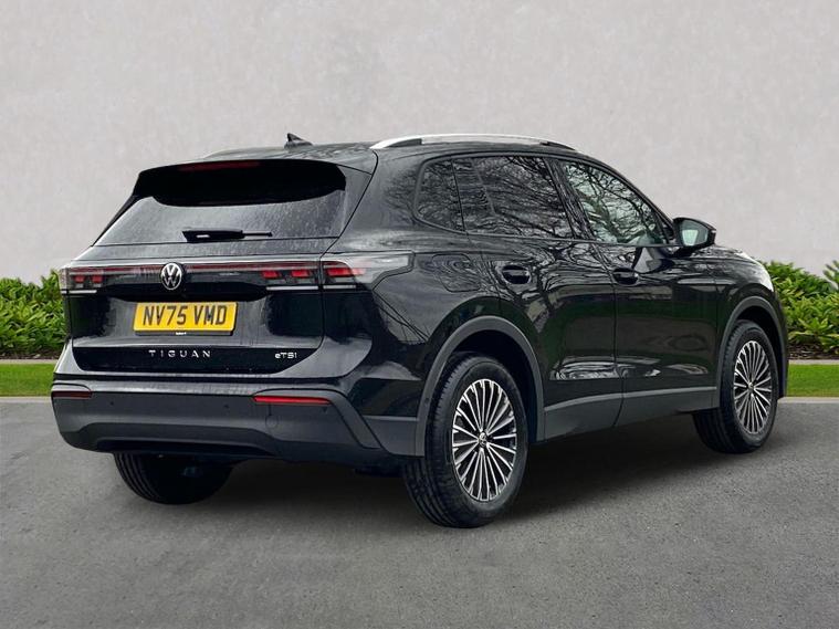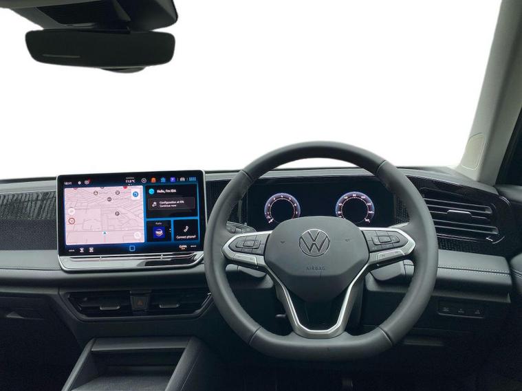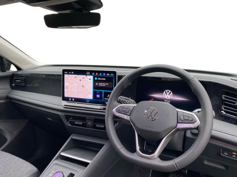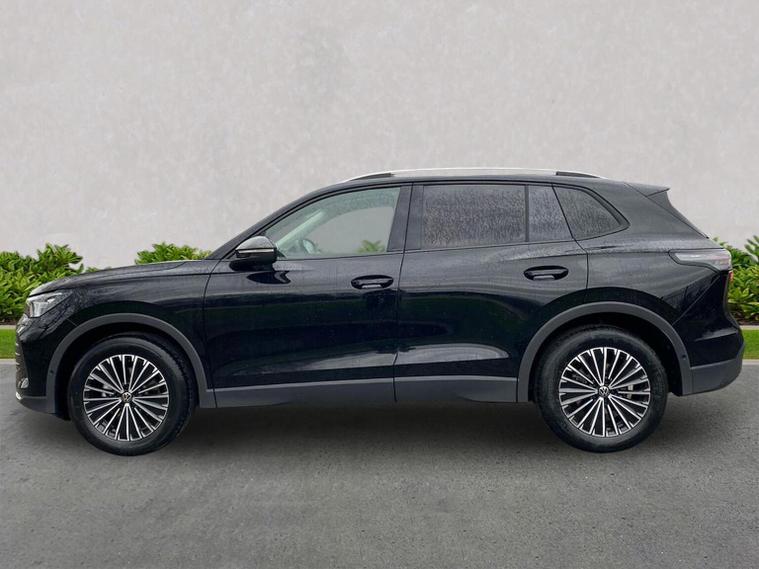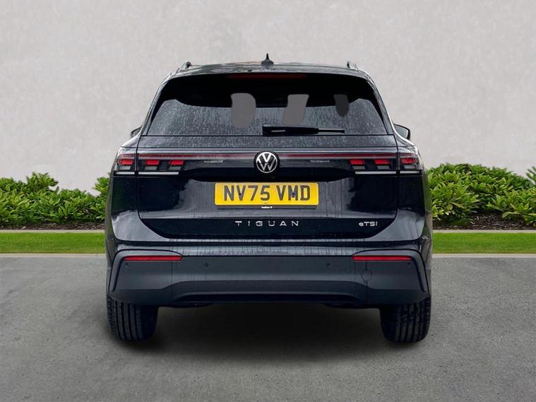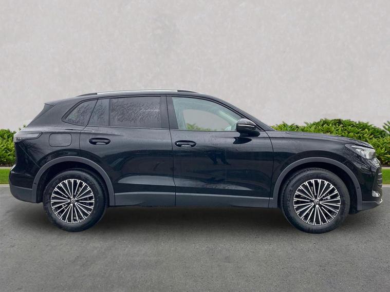 The Volkswagen Tiguan Match 1.5 eTSI 150PS DSG is a highly equipped, refined and impressively advanced family SUV, finished in the striking Grendilla Black Metallic with a Melange-Soul interior. Its 1.5-litre eTSI mild-hybrid petrol engine produces 150PS and works seamlessly with the smooth 7-speed DSG automatic gearbox, delivering quiet, effortless performance and enhanced efficiency. The combination of mild-hybrid assistance and DSG refinement makes this Tiguan exceptionally relaxing to drive in both town and motorway conditions. This Match model is elevated further by the Design Package, adding silver roof rails, distinctive 90% tinted laminated rear safety glass and a series of premium exterior details. The car also sits on striking 18-inch Napoli alloy wheels finished in black with a diamond-turned surface, fitted with 235/55 R18 tyres and secured with anti-theft wheel bolts. The electric tailgate with Easy Open & Close functionality adds everyday convenience, while the Keyless Entry system ensures easy access without removing the key from your pocket. Inside, comfort is enhanced with the optional Winter Pack, offering heated front seats and a heated, leather-wrapped multifunction steering wheel with shift paddles. The cabin is further lifted by the Light Package, which includes LED headlamps with dynamic cornering functionality, a signature LED running light, illuminated door handle recesses, illuminated front and rear logos and 3D LED rear lamps. Interior ambient lighting with ten selectable colours adds an upmarket and modern feel. Technology is another major highlight. The Discover Media navigation system includes streaming and internet capability, an IDA voice assistant, wireless charging, four USB-C ports (including two high-output rear charging sockets) and high-quality connected infotainment. Smartphone integration is seamless thanks to Wireless App-Connect, and inductive charging keeps devices powered without cables. Safety and driver assistance systems are exceptionally comprehensive. The Safety Package includes Adaptive Cruise Control, Autonomous Emergency Braking with pedestrian and cyclist monitoring, oncoming vehicle braking with swerve support, a rear-view camera system, a multifunction front-facing camera for distance control, predictive speed limiter, dynamic road sign display, Lane Assist, Side Assist with Rear Traffic Alert and an exit warning system. ISOFIX mounting points on the outer rear seats and front passenger seat, along with rear side airbags, ensure strong family-friendly safety credentials. The Match model also benefits from Park Assist Pro with Park Distance Control, enabling remote parking capability and memory functions for frequently used parking manoeuvres, taking convenience to another level. Overall, the Tiguan Match 1.5 eTSI DSG offers an exceptional blend of refinement, practicality, advanced technology and premium comfort. With its standout colour, generous specification, smooth hybrid-assisted drivet