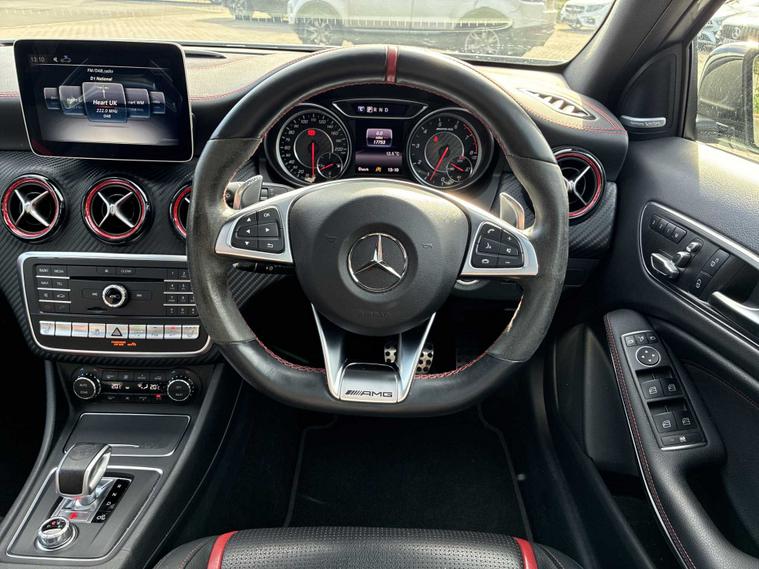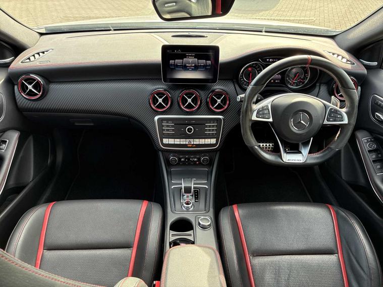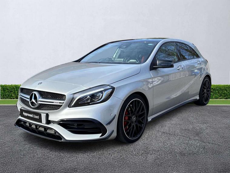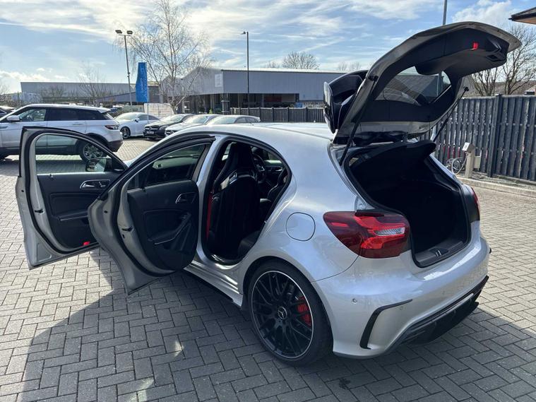 Mercedes-Benz of Worcester are delighted to offer this AMG A 45 4Matic Premium, finished in Polar Silver Metallic with two-tone Lava Black with red perforations. This is a stunning example and must be seen to fully appreciate. With 1 owner from new and being regularly serviced as well as being inspected here at Mercedes-Benz of Worcester by our fully trained and professional Mercedes-Benz technicians; we are confident you will be impressed with the quality of drive and performance. It offers AMG specification including, AMG Aerodynamics package, AMG Performance seats, AMG Night package, 19-inch AMG cross-spoke forged wheels, Blind Spot Assist, Comand Navigation, AMG Performance exhaust system, AMG Exclusive Package, Privacy Glass, LED High Performance headlamps, Reversing camera and much more. We also offer a wide range of purchasing options to suit your needs and hassle-free part-exchange, so you can be confident that you will receive the very best service & advice. All our Approved Mercedes Benz cars have a minimum of 12 months Mercedes Benz Warranty, Free Key Cover, Mot Cover and 1-year Roadside Assistance which continues when you service at any Mercedes Benz Main Retailer. We also perform background checks for accident damage and any mileage discrepancies to ensure we supply you with the highest possible standard of car. We pride ourselves on not only offering vehicles that meet our high standards but also that offer unrivalled value for money. Mercedes Benz of Worcester is here to assist you with all your motoring needs and strive for 100% customer satisfaction. We would love to arrange a personalised video to be sent to you. Please contact the team on 01905698128 as we look forward to taking your enquiry further.