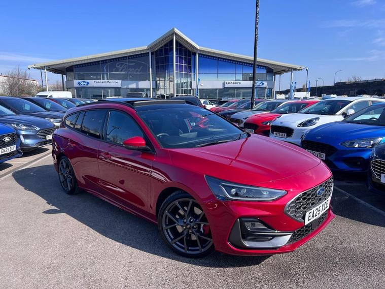 ***FORD DIRECT PREMIUM APPROVED***Optional extras from new include PARKING PACK (REAR VIEW CAMERA, DOOR EDGE GUARDS & AUTO PARK ASSIST), DRIVER ASSISTANCE PACK (INCLUDES ADAPTIVE CRUISE CONTROL, AUTO HIGH BEAM ASSIST & DRIVER ALERT SYSTEM), BLIND SPOT DETECTION SYSTEM (BLIS), HANDSFREE POWER TAILGATE & ELECTRIC PANORAMIC OPENING SUNROOF. Other standard features include DYNAMIC MATRIX LED HEADLIGHTS, 19" ALLOYS WITH RED BRAKE CALLIPERS, HALF LEATHER ALCANTARA ST RECARO SEATS, SYNC 4 13.2" LARGE TOUCH SCREEN ENTERTAINMENT WITH SATELLITE NAVIGATION & DAB RADIO, DIGITAL COCKPIT, COMPATIBLE WITH APPLE CAR PLAY & ANDROID AUTO, HEATED FRONT SEATS & HEATED STEERING WHEEL, WIRELESS CHARGING PAD, B&O PLAYER, BLUETOOTH WITH VOICE COMMAND, CLIMATE CONTROLLED AIR CONDITIONING, QUICK CLEAR HEATED FRONT WINDSCREEN FOR THOSE FROSTY MORNINGS, COMPATIBLE WITH FORD 'APP' which also enables you to track your vehicle AND SO MUCH MORE. We're absolutely sure that this Focus ST estate in stunning FANTASTIC RED special metallic colour will put a smile on your face from ‘ear to ear’ as it boasts fantastically smooth power & performance whilst handling the roads like it’s sat on rails. You will not be disappointed! ***2 YEARS FREE RAC ROADSIDE ASSISTANCE WITH THIS CAR / BALANCE OF FORD WARRANTY UNTIL APRIL 2028 WITH AN OPTION TO EXTEND***Lookers Ford Sheffield (S4 7UQ) ARE A FORD APPROVED RETAILER. WE OFFER COMPETITIVE FINANCE RATES AND ALL OUR VEHICLES ARE THOROUGHLY INSPECTED & HPI CLEAR. AS PART OF THE LOOKERS LIMITED GROUP, WE HAVE ACCESS TO OVER 40 DIFFERENT BRANDS, SO WE ARE BEST PLACED TO FIND THE CORRECT VALUE FOR YOUR PART EXCHANGE. BUY WITH CONFIDENCE FROM A COMPANY ESTABLISHED IN 1908. LOOKERS A GOOD DEAL, BETTER** PLEASE CALL NOW FOR MORE INFORMATION & A PERSONALISED VIDEO SHOWING YOU YOUR NEXT CAR t: 01143389217 Unless otherwise stated, vehicles may have previously been used for business or hire purposes and so may have had multiple users. Where we hold documents relating to vehicle history, these are available for inspection on request.