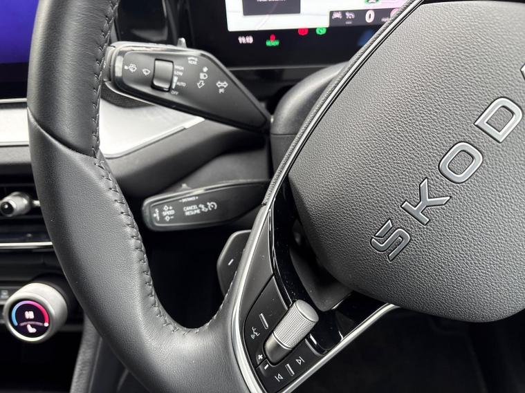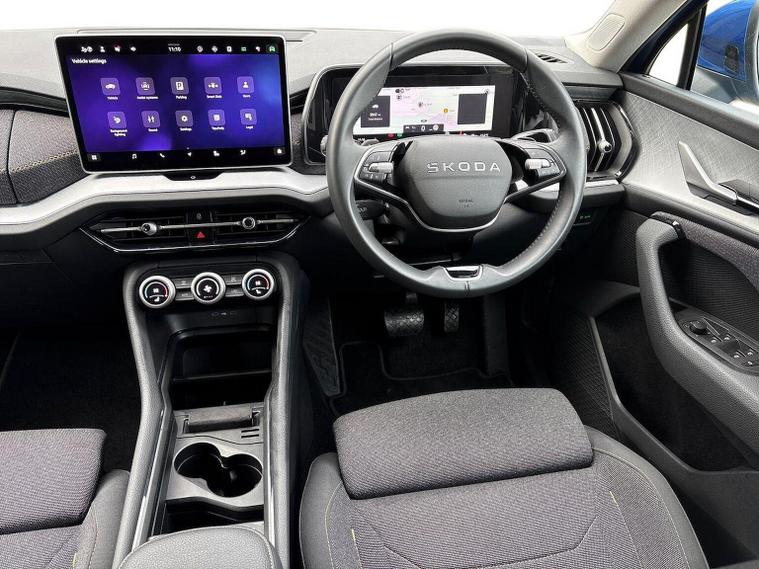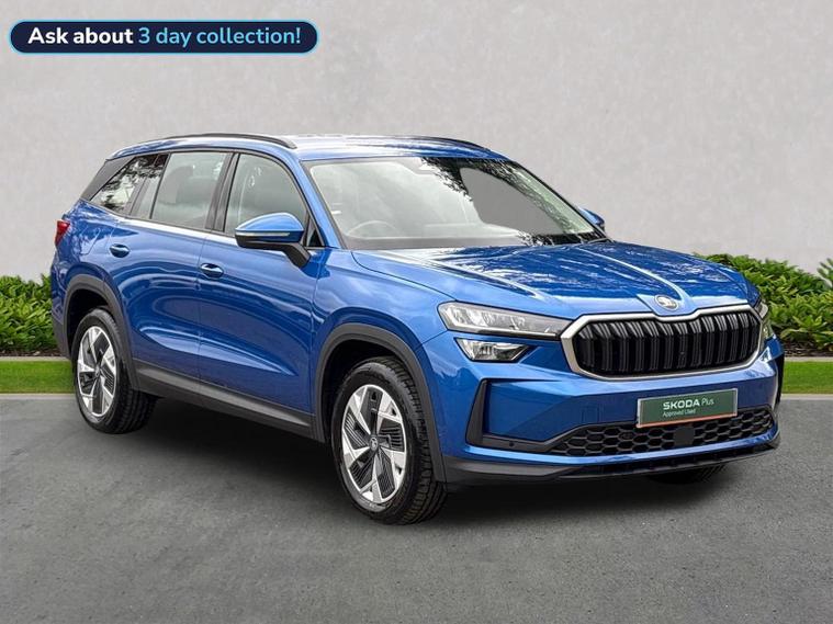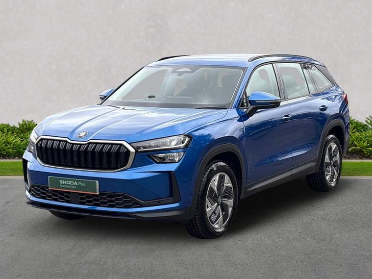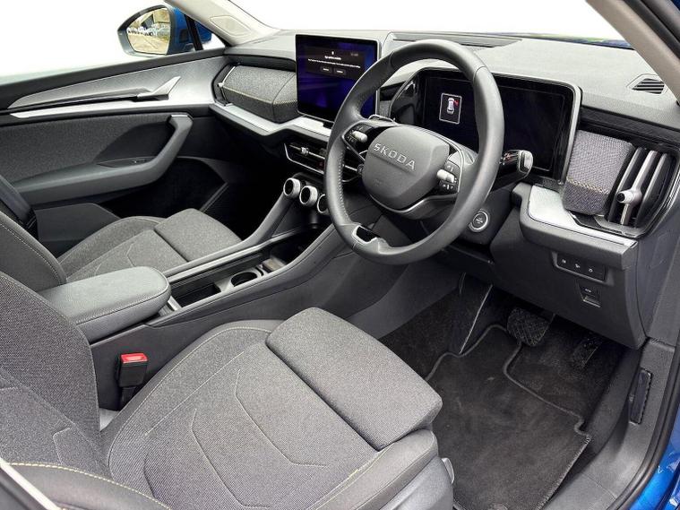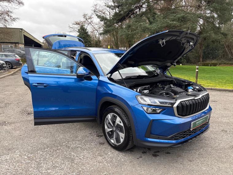 Skoda Guildford are excited to offer this beautiful Race Blue Kodiaq with Black upholstery. With just under 4000 miles, this Kodiaq is a great example. With this being the facelifted Kodiaq, the SE comes with a fantastic level of specification as standard. Lets take a look at what additional options this Kodiaq has: Skoda door mirrors with the features you listed are highly advanced exterior mirrors that offer convenience and enhanced visibility. Heated and electric adjustable features allow for clear visibility in all weather, while auto-folding and auto-dimming functionalities automatically adjust the mirrors for your convenience and to prevent dazzling from other vehicles' headlights. The memory function stores your preferred mirror settings, linking them to your vehicle's seat memory, and ensures they return to your personalized position each time you drive. Three-zone splits up the driver and front passenger zones, and then adds a separate third zone for the rear seats. A Škoda Rear View Camera is an integrated accessory that provides a real-time, wide-angle view of the area behind the vehicle on the car's infotainment system display to help drivers with safer and easier reversing and manoeuvring. It typically activates automatically in reverse gear, displays guide lines, and is often fitted discreetly into the boot release handle, sometimes with its own cleaning system. Škoda's Dynamic headlight range control with cornering light (AFS 1) is an Adaptive Frontlight System (AFS) that automatically adjusts the headlights' direction and range based on driving speed, steering angle, and even weather conditions, improving visibility, safety, and reducing blind spots, especially on winding roads and in poor lighting conditions. The "1" in AFS 1 likely refers to a specific generation or version of the system, while the cornering light function specifically activates additional lighting when turning at low speeds to illuminate tight bends and junctions. We would love to invite you down for an appointment to view this Kodiaq. Please give us a call on 01483334571 or send an enquiry in. We can send across a personalised video of the vehicle. We look forward to welcoming you soon to Skoda Guildford.