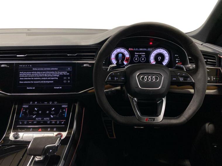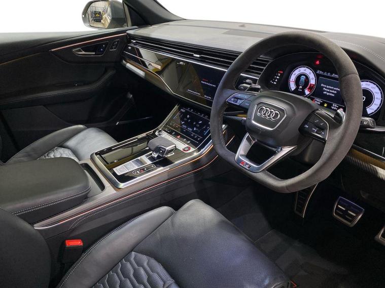 Reference: KY74EGC. Guildford Audi are offering a rare opportunity to own this AUDI RSQ8 4.0 TFSi V8 Performance Carbon Black Quattro 640ps. This 1 owner vehicle has full service history, was supplied by our group and has been maintained by us too. Since being returned to us it has been fully checked over by our fully trained, experienced and skilled technicians and is ready to go. ===================================================================== The RSQ8 is a high-performance luxury SUV with the soul of a sports car. Sharing its engine with the Lamborghini Urus, it delivers remarkable performance and handling for its size. Inside, it’s spacious, tech-rich, and refined. It’s perfect for those wanting performance SUV thrills without sacrificing comfort, space, or everyday usability. This car is supplied with the following optional upgrades :- TECHNOLOGY PACK which adds smart driving aids and convenience tech. PANORAMIC GLASS SUNROOF which brings natural light and an airy cabin feel. BLACK STYLING PACK for a more aggressive and sporty look. . Standard features on this car include Integrated SATELLITE NAVIGATION with real-time routing and traffic updates. FULL LEATHER delivering a luxury feel in the cabin. 360 DEGREE CAMERAS giving an all around view from multiple angles for safer maneuvering. HEAD UP DISPLAY which projects driving data on windshield to keep eyes on road. CLIMATE CONTROL which automatically regulates cabin temperature for you. VIRTUAL COCKPIT so that you can customise the digital dashboard with maps, gauges, and media. CRUISE CONTROL to maintain a steady speed without constant pedal input. FRONT AND REAR PARKING SENSORS to help manoevering in tight spaces whether you are going forward or reversing. REAR CAMERA for easier and safer reversing. HEATED FRONT SEATS to keep your comfortable in cold weather conditions. Plus lots more. - As a VAT Qualifying vehicle it has the additional benefit to VAT Registered individuals or companies buying the car solely for business use, as they could reclaim the 20% VAT from the purchase price. ===================================================================== 150 MULTI POINT CHECK | AUDI PARTS |FACTORY TRAINED TECHNICIANS 12 MONTH MANUFACTURER BACKED WARRANTY & ROADSIDE ASSISTANCE. AUDI CONNECTED|HISTORY CHECKS ===================================================================== Lookers are an authorised representative for a wide range of award-winning car manufacturers, providing you with an unparalleled choice of quality and approved used cars, currently for sale. Our exceptional standards ensure you receive the best possible service when you purchase with us, ensuring peace of mind when you drive away with your new vehicle. With us representing so many great brands we are an an excellent position to offer you a fair and transparent price for your part exchange. At Lookers, we care about our customers.