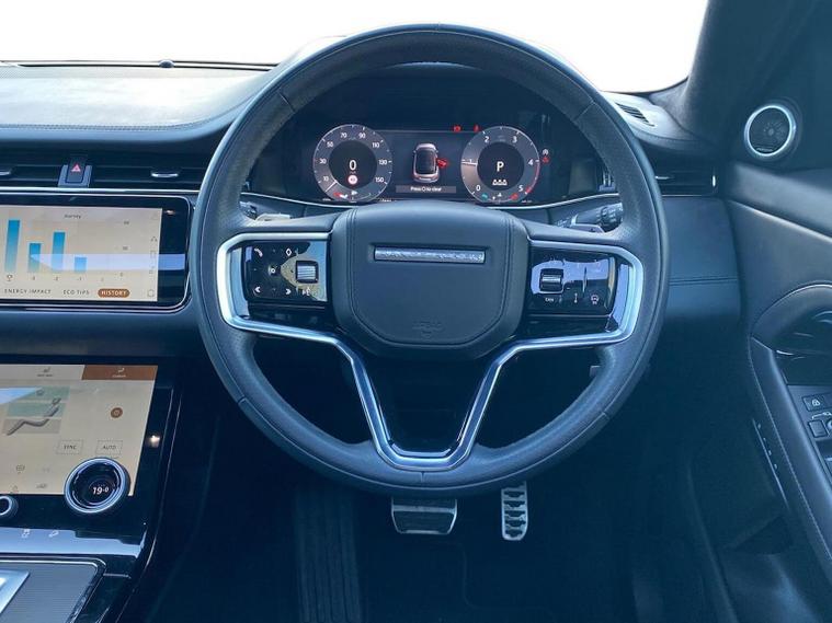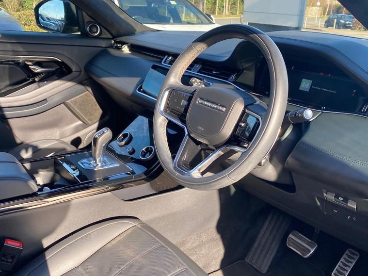 This 2023 Range Rover Evoque D200 Autobiography is a Land Rover manufacturer approved vehicle with a full service history and only one owner from new. This stylish SUV features a powerful 2.0L diesel engine, a Four Wheel Drive drivetrain, and meets Euro 6 emission standards. Inside, you'll find a luxurious Autobiography trim, complete with a Head Up Display, a sliding panoramic roof with a powered blind, automatic headlights, and keyless entry for ultimate convenience. Seamlessly connect your devices with Apple CarPlay. Experience impressive performance with an acceleration of 0-60mph in just 7.9 seconds, showcasing how this Evoque offers a more dynamic driving experience compared to similar vehicles. The combination of its advanced technology, premium features, and the assurance of manufacturer approval makes this Range Rover Evoque a truly exceptional choice for those seeking sophistication and capability.