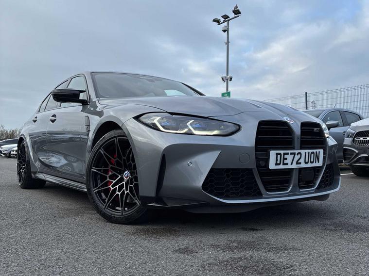 **ENQUIRE NOW ONLINE OR CALL 01743522189** PLEASE CALL & QUOTE *DE72UON* TO GET A PERSONALISED GUIDED VIDEO TOUR OF THIS CAR! Lookers Mercedes-Benz of Shrewsbury are pleased to be offering this incredible BMW M3 Saloon Competition xDrive DCT Automatic finished in Skyscraper Grey Metallic over a beautiful contrasting Fiona Red & Black Extended Merino Leather Interior. Having just covered 32605 miles, this lovely example benefits from a Full BMW Service History with Lookers BMW Crewe & we will be completing the required service needed, along with 4 new OEM Michelin Pilot Sport Cup Specification tyres, prior to its new owner taking delivery! This particular M3 Competition is presented with some desirable Factory options such as: 19” & 20” M Double Spoke 826 Bi-Colour Black Alloy Wheels, BMW M 50 Year Badges, Technology Pack Plus, Visibility Pack, Comfort Pack & M Red Brake Calipers. This vehicle is presented under the "Lookers Approved" Programme including 3 months RAC Warranty & Safety Check by our highly skilled technicians, providing peace of mind motoring. Our comprehensive range of vehicles will satisfy all who demand the best – whether for private or business use. Our experienced showroom staff offer excellent customer service with easy Click & Drive, the simple, contactless way to buy a car. Don't miss out! Call today to reserve this beautiful car from Lookers Mercedes-Benz of Shrewsbury. *DISCLAIMER* - Vehicle Specification & Features are provided by Third-Party sources. Whilst we make checks for accuracy, we unfortunately can not be held responsible for any inaccuracies.