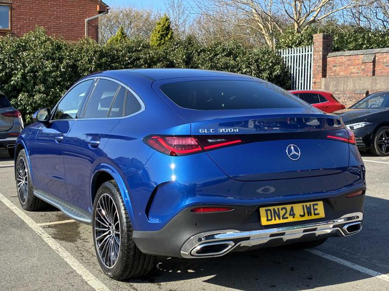 Finished in the absolutely stunning Spectral Blue Metallic, this Mercedes-Benz GLC300d MHEV AMG Line Premium Plus Coupe offers a perfect blend of modern hybrid efficiency, coupe-SUV styling and premium Mercedes-Benz refinement. Powered by the advanced 2.0-litre mild-hybrid diesel engine producing an impressive 291?ps, this GLC delivers strong, responsive performance with enhanced smoothness and improved efficiency thanks to its integrated hybrid assistance. Paired with the G-Tronic+ automatic gearbox and 4MATIC all-wheel drive, it provides confident traction, seamless acceleration and a refined driving experience in all conditions. The coupe silhouette gives the GLC a sleek and sporty presence, enhanced further by AMG Line styling with its bold bodywork, dynamic lines and distinctive design cues that instantly catch the eye. Inside, the Premium Plus package elevates the cabin to a truly luxurious level. The panoramic sunroof fills the interior with natural light, while features such as the Burmester surround sound system, heated seats, upgraded digital displays, augmented-reality navigation and keyless entry ensure every journey feels exceptional. High-quality materials, ambient lighting and Mercedes’ latest interior architecture create an environment that is both modern and beautifully crafted. Spacious, stylish and packed with cutting-edge technology, this GLC300d MHEV Coupe is an outstanding choice for those seeking a premium SUV that combines efficiency, performance and unmistakable Mercedes-Benz quality. Finished in one of the most desirable and eye-catching colours available, it is a fantastic example of the latest GLC Coupe. Please call Mercedes-Benz of Stoke directly on 01782492848 to reserve this vehicle or request a personalised walk-round video.