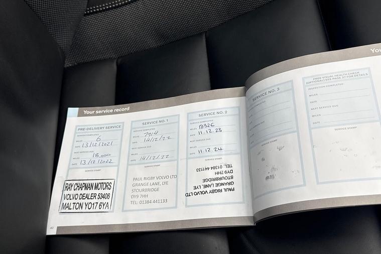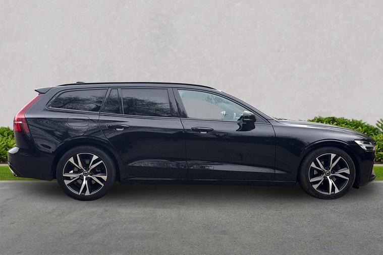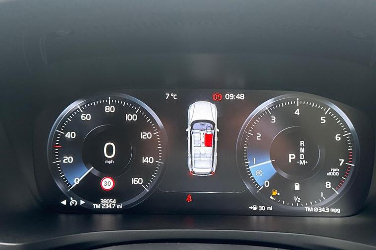 7-speed Dual Clutch transmission Sport Pedals Tailored leather gear shift with contrasting seams 2-Zone Electronic Climate Control Afterrun parking climate Passenger Airbag Cut Off Switch Dual Stage Driver and Passenger Airbags Charcoal headlining Road Sign Information Driver Alert Control with Lane Keeping Aid R-Design grille with high-gloss black insert LED headlights 12-inch driver display Cruise Control Adjustable Speed Limiter My Volvo DAB (Digital Audio Broadcasting) Radio High Performance Sound Autofolding Heated Power Door Mirrors Automatic door locking Door mirror covers. Black Stone Double locking Private Locking Dark Tinted Rear Windows Anti-theft Alarm including Immobiliser. Volume Sensor and Level Sensor Power Operated Tailgate Keyless Drive (includes Keyless Entry and Keyless Start) "CleanZone" Air Quality System and Pollen Filter Voice Activated Control for Key Functions Digital owners manual Metal Mesh aluminium decor Nappa leather/Leatherette/Textile upholstery Fully adjustable driver seat Fully adjustable passenger seat Heated Front Seats Manually Foldable Rear Headrests Five seats Mechanical release second seat row 4-Way Lumbar Support Sport Textile Mats. Charcoal Load Protection Net Rear centre armrest Illuminated Vanity Mirrors Rear Footwell and Side Step Illumination 12v Socket - Cargo Area Load securing eyelets Load cover. manual/semi automatic Auto-dimmed rear-view mirror Hidden storage compartment Power Cushion Extension. Driver Sport Chassis Braking system Indirect Tyre Pressure Monitoring System (iTPMS) Oncoming Lane Mitigation EBL. Flashing Brake Light and Hazard Warning Tailored sport steering wheel. Charcoal Adaptive power steering 18" 5 Double Spoke (Diamond Cut/Matt Black) Temporary mobility kit Locking Wheel Nuts Twin Integrated Exhaust Pipes Wiper blades with integrated washers. front and rear Cargo opening metal scuff plate Volvo tread plates. aluminium Glossy Black Window Trim Roof Rails - Integrated. High Gloss Black Tempered side windows Sensus Navigation Front and Rear Park Assist Ticket Holder Rear Park Assist Camera Plastic protection cap Contour front seats 9-inch centre display Whiplash injury protection system IC (Inflatable Curtains) - Full Length Side impact protection ISOFIX Attachment (Outer Rear Seats) Safety belts Rain Sensor - Automatic Windscreen Wiper Activation Steering Wheel Remote Infotainment Control Humidity sensor Start/Stop technology Bluetooth® Handsfree System