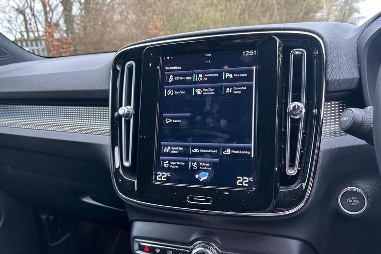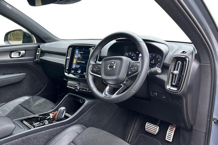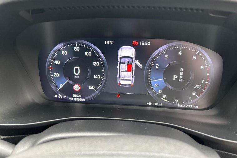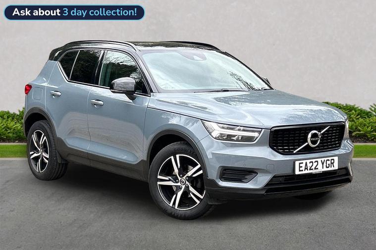 Roof top in contrast colour. Black Stone Door mirror covers. Black Stone Nubuck textile/Nappa Leather upholstery 8-speed Automatic transmission Sport Pedals Tailored leather gear shift with contrasting seams 2-Zone Electronic Climate Control Afterrun parking climate Passenger Airbag Cut Off Switch Dual Stage Driver and Passenger Airbags Driver Knee Airbag Charcoal headlining Charcoal interior inserts Road Sign Information Driver Alert Control with Lane Keeping Aid R-Design grille with high-gloss black insert LED headlights 12-inch driver display Cruise Control Adjustable Speed Limiter My Volvo DAB (Digital Audio Broadcasting) Radio High Performance Sound Autofolding Heated Power Door Mirrors Automatic door locking Small storage. front Double locking Dark Tinted Rear Windows Anti-theft Alarm including Immobiliser. Volume Sensor and Level Sensor Power Operated Tailgate "CleanZone" Air Quality System and Pollen Filter GloveBox Bag Hook Voice Activated Control for Key Functions Digital owners manual Cutting Edge aluminium decor Adjustable passenger seat Five seats Mechanical release second seat row Manual cushion extensions. driver and passenger 4-Way Lumbar Support Sport Textile Mats. Charcoal Load Protection Net Rear centre armrest Illuminated Vanity Mirrors Rear Footwell and Side Step Illumination 12v Socket - Cargo Area Auto-dimmed rear-view mirror Front and 2nd Row Centre Armrest with Storage and Cupholders Glossy black tunnel console Sport Chassis Braking system Indirect Tyre Pressure Monitoring System (iTPMS) Oncoming Lane Mitigation Hill Descent Control EBL. Flashing Brake Light and Hazard Warning Tailored sport steering wheel. Charcoal Adaptive power steering 18" 5 Double Spoke (Diamond Cut/Matt Black) Temporary mobility kit Locking Wheel Nuts Hidden tail pipes Glossy Black Window Trim Roof Rails - Integrated. High Gloss Black Volvo tread plates. aluminium Tempered side windows Rain Sensor - Automatic Windscreen Wiper Activation Sensus Navigation Front and Rear Park Assist Ticket Holder Rear Park Assist Camera Plastic protection cap Front seats 9-inch centre display Whiplash injury protection system IC (Inflatable Curtains) - Full Length Side impact protection ISOFIX Attachment (Outer Rear Seats) Steering Wheel Remote Infotainment Control Humidity sensor Bluetooth® Handsfree System