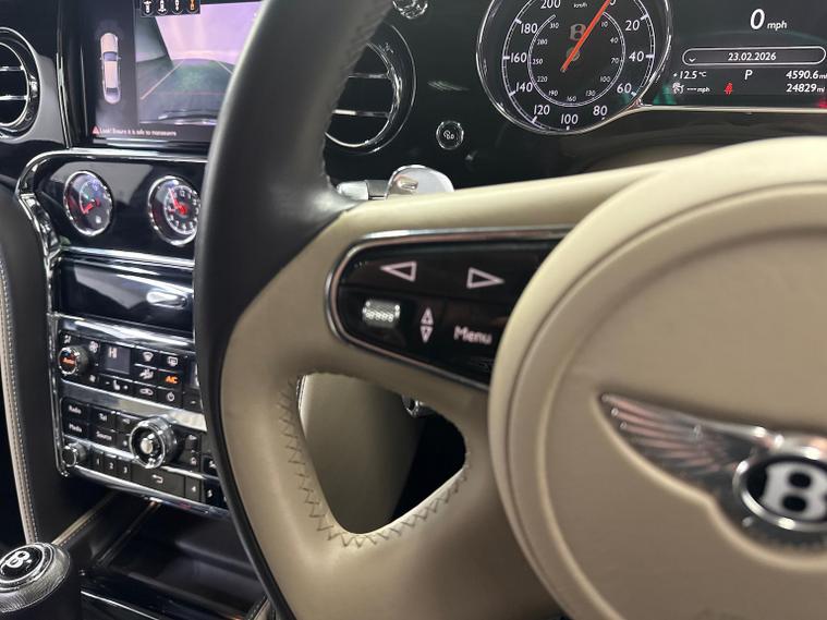 Bentley Belfast are delighted to offer this exceptional Mulsanne Speed finished in the solid and metallic range Magnetic Grey with Portland and Anthracite leather interior. Originally built by Bentley in Crewe, for their company owned fleet and then purchased by Bentley Belfast for a local businessman, who has owned and serviced the car with us since and recently part exchanged. This is one of the highest specc'd Mulsanne's ever leave the factory at Crewe with a price tag at over £308, 000 it represents the pinnacle, of handcrafted luxury automotive manufacturing. With only 25, 000 miles from new, this Speed model epitomises bespoke luxury, elegance and performance, commensurate with an exceptionally high level of factory fitted options. Performance is truly outstanding with delivery being smooth and refined, from Bentley's legendary 6.75 litre twin turbo powerhouse. When entering the car, you will be blown away with a master class of traditional craftsmanship, the rich Portland and Anthracite diamond quilted hide door panels and seats, which include comfort specification and entertainment spec - you can even enjoy a glass of your favourite fizz from the rear refrigerated cooler, in a bespoke Bentley crystal champagne flute with nibbles from the veneered picnic rear tables. Cutting to the chase, this Mulsanne spec includes Extended Range solid and Metallic Paint, Comfort Specification, Entertainment Spec with maps, Large Panel Sunroof to front cabin, Carbon Fibre Waistrail inlay, front and rear deep pile Wilton carpet mats, twin illuminated fold down vanity mirrors, refrigerated bottle cooler with frosted glass and bespoke crystal champagne flutes, Adaptive Cruise Control, Bentley GPS, Corner View Camera, Speed Premier Specification with Dark Tint Flying B Radiator Mascot.......top specification and best value online with a TWO YEAR Bentley Certified Pre-owned warranty as part of your deal from Bentley Belfast. Currently undergoing Preparation. For your personalised video or to arrange a showroom appointment, please contact either Richard or Kieron on 02895882131. Competitive funding options are available, as well as part exchange and delivery by closed transporter, can be arranged to any part of the UK or Ireland.