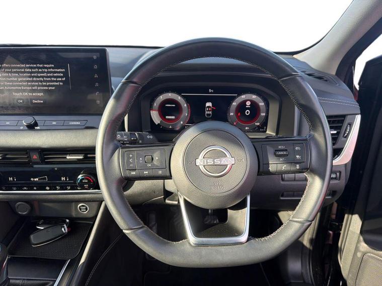 Virtually New, Stylish & Packed With Tech – 2023 Nissan Qashqai 1.3 DIG-T MHEV N-Connecta Manual with Glass Roof Pack in Pearl Black If you're looking for a modern SUV that blends premium styling, advanced technology and impressive efficiency, this 2023 Nissan Qashqai N-Connecta finished in sleek Pearl Black is a standout choice. With just over 1, 600 miles, it’s barely been driven—giving you that “almost new” experience at fantastic value. Under the bonnet, the smooth and efficient 1.3 DIG-T Mild Hybrid engine produces 140ps, offering responsive performance while keeping running costs low. Paired with a manual gearbox, it provides an engaging drive, and being Euro 6 (s/s) compliant, it’s ideal for both city commutes and longer motorway journeys. One of the real highlights of this model is the Glass Roof Pack. The panoramic roof brightens the cabin with natural light, giving the interior a spacious, premium feel that makes every journey more enjoyable. As an N-Connecta, this Qashqai is packed with features designed to make driving easier, safer and more comfortable. Key equipment includes: 12.3” NissanConnect touchscreen with navigation Wireless Apple CarPlay & Android Auto 12.3” digital driver display 360° Intelligent Around View Monitor Front & rear parking sensors Keyless entry & push-button start Dual-zone climate control Stylish alloy wheels & LED lighting The interior is incredibly versatile, with plenty of room for passengers and a generous boot—perfect for family life, weekend trips or everyday errands. The Pearl Black paint gives it a sophisticated, premium presence on the road. And because you're buying from an Approved Nissan Intelligent Choice dealer, you get complete peace of mind: ? Minimum 12-month Nissan Intelligent Choice Warranty ? RAC Roadside Assistance ? Full multi-point inspection ? Verified mileage & history checks With ultra-low mileage, excellent specification, and stunning looks, this Qashqai is ready for its next adventure. Speak to our team today on 02891992095 to arrange a test drive or request a personalised walk-around video!