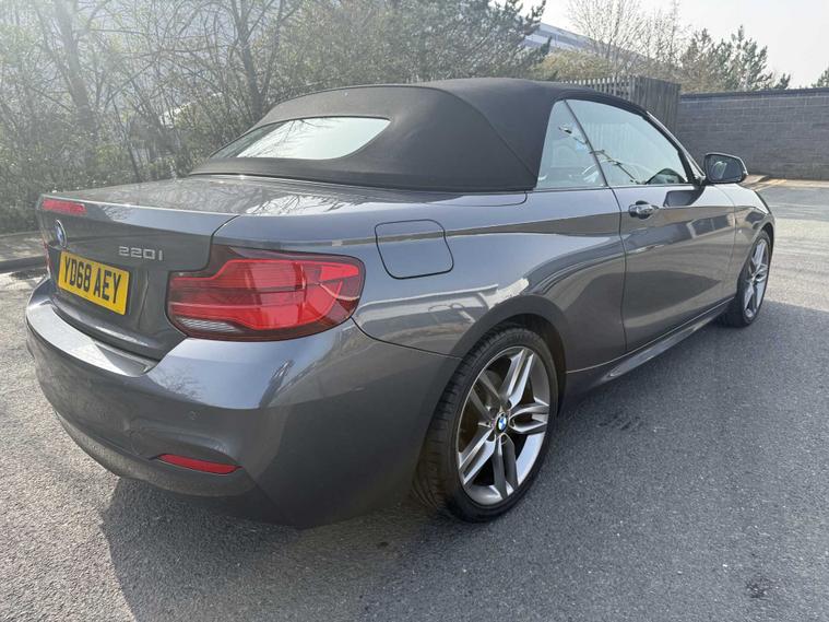 Thank you for viewing this great spec 220i M Sport Convertible available from our BMW site in Stoke-On-Trent. Finished in stunning Mineral Grey paint and Black Dakota leather Interior with all the great specification you expect from a BMW that includes; 18” Alloys, Cruise Control, Convertible Comfort package, Interior comfort package, Front and Rear Parking Sensors. Why Choose Lookers BMW Stoke? As with all BMW approved Vehicles there are a host of additional reasons of why to choose Lookers BMW to supply you with your next vehicle which include : • Minimum 12 Month unlimited Mileage BMW warranty • Independent, Certified check to verify vehicle history and mileage • Only Genuine BMW parts used – most with a 2 year warranty • Meticulous checks carried out by our qualified BMW Technicians • Minimum Of 12 months BMW road side assistance • BMW Accident support If you are viewing from a distance let us bring the car to you via video link one of our BMW experts will demonstrate the car to you via a link to your smart device so you can view the vehicle in the comfort of your own home with the family! Please feel free to browse our review centre at google with over 1500 reviews at 4.5 stars ! We have an extensive selection BMW’s available and have access to a huge selection of vehicles across our group. Whatever you are looking for we will endeavour to find for you.