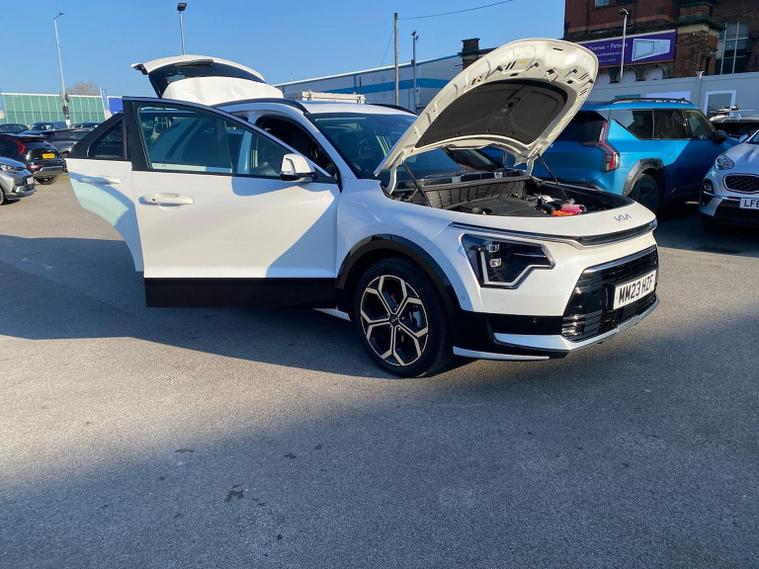 Introducing the stunning 2023 Kia Niro 1.6h GDI 4 SUV, a remarkable petrol hybrid that combines efficiency with style. This vehicle, available at Kia Stockport, boasts a striking white exterior and a luxurious black leather interior, making it a standout choice for those seeking both comfort and sophistication. With only 1 previous owner and just 4, 792 miles on the clock, this Niro is in excellent condition and comes with the remaining manufacturer warranty for your peace of mind. The Kia Niro is packed with features designed to enhance your driving experience. Enjoy the convenience of Bluetooth connectivity, a touch screen display, and compatibility with Apple CarPlay and Android Auto. The vehicle also includes advanced safety features such as a lane departure warning system and collision detection, ensuring you and your passengers are well protected. Additional highlights include adaptive cruise control, a power-operated tailgate, heated seats, and a panoramic sunroof, making every journey a pleasure. At Lookers, we pride ourselves on our commitment to customer satisfaction. With over 100 years of experience in the automotive industry, our dedicated staff at Kia Stockport are here to assist you in finding your ideal vehicle. We offer a full range of aftersales services, ensuring your car remains in top condition long after your purchase. Don’t miss out on this exceptional Kia Niro. Contact us today to arrange a test drive and experience the quality for yourself!