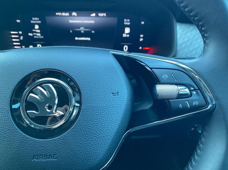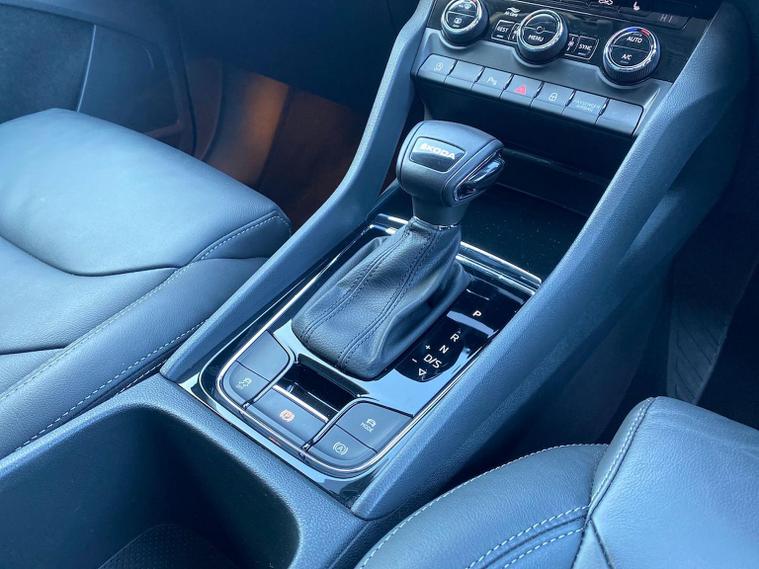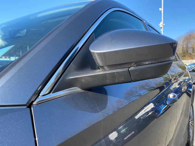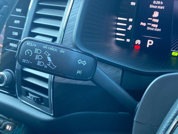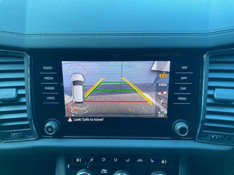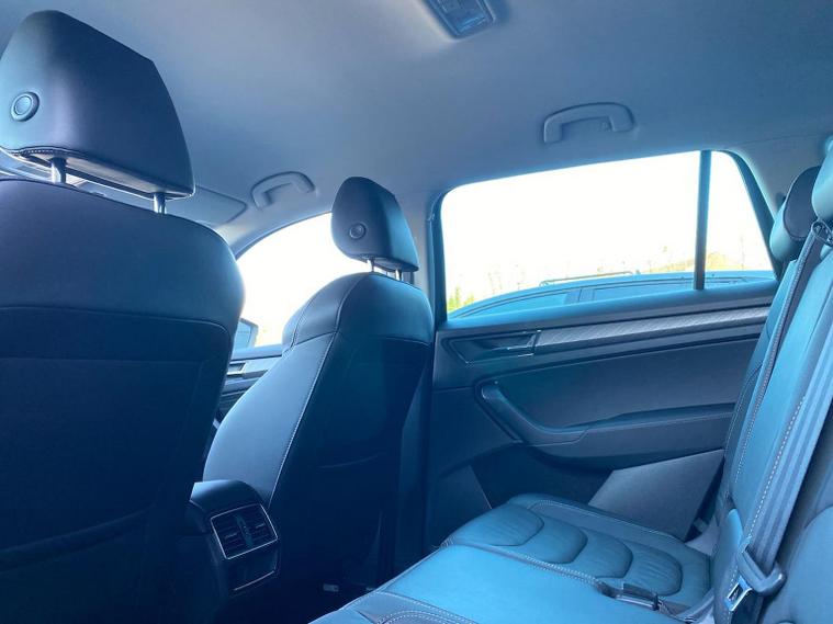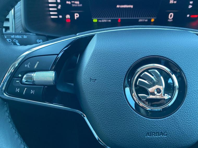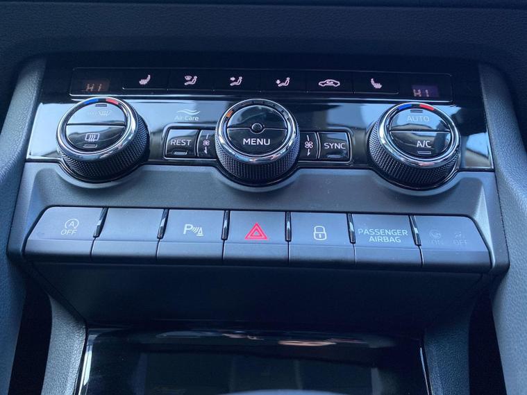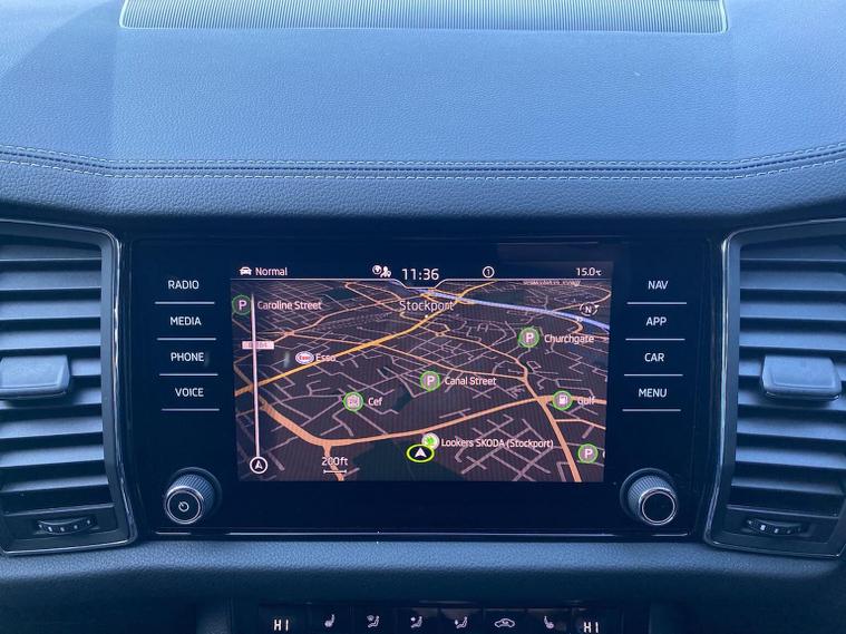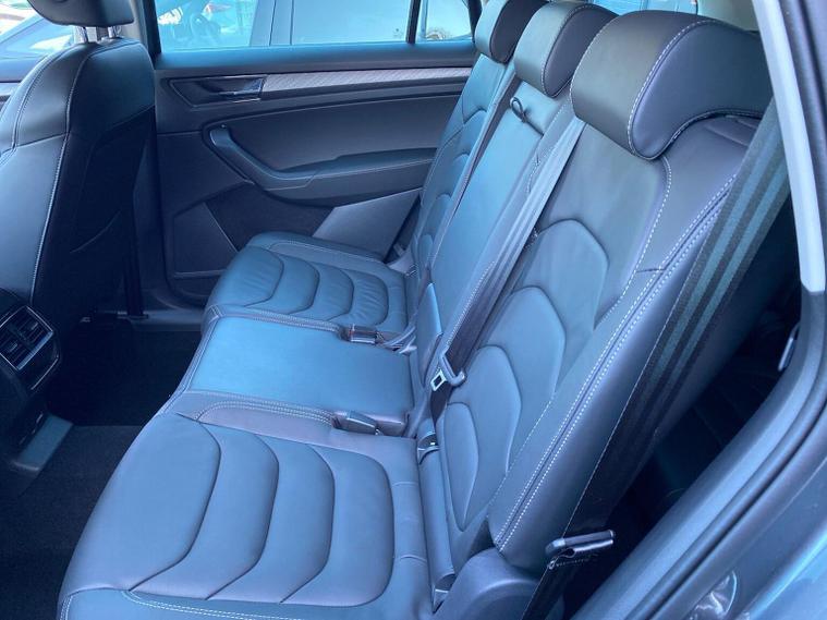 This Škoda Kodiaq SE L Executive 1.5 TSI 150PS DSG (7 seats) in Graphite Grey Metallic with black leather upholstery includes the SE L Executive package, adding 19" Cursa anthracite alloy wheels, Light Assistant, auto-dimming rear view mirror, electrically adjustable heated folding mirrors with auto-dimming and memory plus boarding spots, aero wipers with light and rain sensor, rear view camera, power-adjustable driver’s seat with memory, driver’s lumbar support and a drawer under the front passenger seat. It is also fitted with the optional 2-spoke leather multifunction steering wheel. Standard equipment includes DAB radio, Bluetooth, Amundsen navigation, SmartLink, Care Connect services, front and rear parking sensors, cruise control, dual-zone climate control, front and rear electric windows, privacy glass, chrome exterior styling, heated rear window, roof rails, LED headlights, LED rear lights, textile floor mats, height-adjustable front seats, folding and sliding second row, third-row seating, illuminated glovebox, centre armrest, umbrella, rear air vents, boot nets and storage features. Safety features include front, side and curtain airbags, passenger airbag deactivation, Front Assist, Lane Assist, Hill Hold Control, alarm with interior monitoring and SAFE function, ISOFIX mounts on outer rear seats, ABS, ESC, tyre pressure monitoring and remote central locking with two keys. We offer in-person appointments, personal video appointments, test drives and finance options.