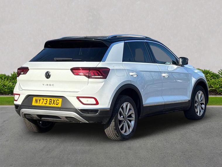 Finished in the striking two-tone Pure White with contrasting Black roof, this T-Roc Style has a sharp, modern look that really stands out on the road. The Titanium Black and Anthracite interior creates a clean and contemporary cabin environment, offering a comfortable place to enjoy every journey. Powered by the efficient 1.0 TSI 110PS engine paired with a 6-speed manual gearbox, it delivers smooth performance with excellent fuel economy, making it ideal for both city driving and longer weekend trips. Its balanced driving feel and compact SUV proportions give you confidence on any road. Inside, the Discover Media navigation system provides full connectivity with wireless App-Connect, integrated streaming and internet features, six speakers and an e-SIM for online services. The multifunction front-facing camera enables useful features such as Dynamic Road Sign Display, making it easier to stay aware of changing limits and road conditions. The Driver Assistance Package enhances safety and driving convenience with Adaptive Cruise Control, a speed limiter, High Beam Assist and Front Assist autonomous emergency braking. Together, these systems provide reassurance and support during both daily commutes and motorway journeys. Security is also well covered with an anti-theft alarm system featuring interior monitoring, SAFELOCK central locking and two remote-control folding keys. A tool kit and jack accompany the spare wheel setup, ensuring added peace of mind for long journeys. A stylish, well-equipped and economical compact SUV in a rare and desirable two-tone colour combination, this T-Roc Style is ideal for drivers who want excellent value, modern technology and standout looks in a comfortable and practical package.