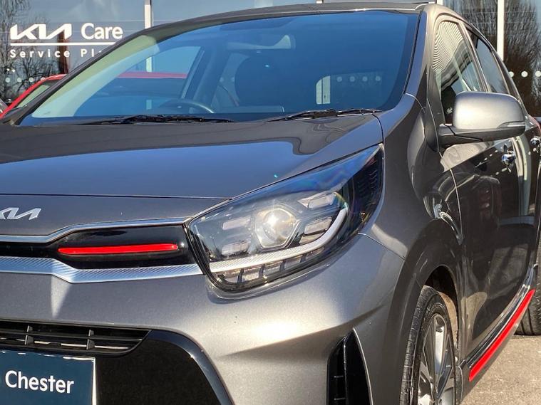 Here at Lookers Kia Chester we have this fantastic rare 1.0 Turbo Kia Picanto boasting 99BHP. Finished in Astro Grey with a huge specification as standard, with full faux leather interior. Diamond cut alloy wheels, Folding heated door mirrors, Heated Seats, Apple Car Play, Reverse Camera, DAB RADIO and much more! Also has the remainder of the 7 year warranty !