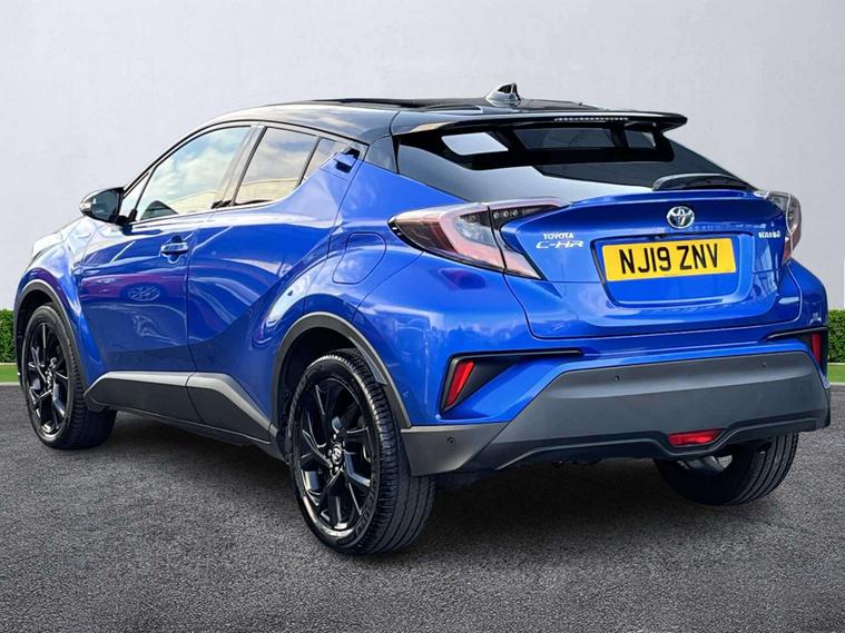 Finished in striking Nebula Blue, this 2019 (19 plate) Toyota C-HR 1.8 Hybrid Dynamic CVT blends bold coupe-inspired styling with exceptional hybrid efficiency and Toyota’s renowned reliability. Powered by the smooth and refined 1.8-litre hybrid powertrain paired with an effortless CVT automatic transmission, it delivers quiet, responsive performance and excellent fuel economy—perfect for both city driving and longer journeys. Inside, the C-HR Dynamic offers a premium, modern cabin finished with black leather upholstery, adding comfort and a high-quality feel throughout. The elevated seating position provides superb visibility, while the spacious five-door layout ensures practicality for everyday use, commuting and family life. Toyota’s hybrid system operates seamlessly in the background, enhancing refinement and reducing running costs. As a Dynamic specification, this model comes well equipped with advanced technology, intelligent safety systems and stylish design touches that enhance both comfort and confidence on the road. From its eye-catching exterior lines to its high-quality interior materials, the C-HR stands out as a stylish and dependable SUV. This example has had one owner from new and comes with a full service history, demonstrating careful ownership and consistent maintenance. Offered for sale by Lookers Nissan Sunderland, this Toyota C-HR has been fully inspected and prepared to our exacting standards for complete peace of mind. Contact our friendly and knowledgeable team today to arrange a test drive and experience the efficiency, style and comfort of the Toyota C-HR Hybrid Dynamic for yourself.
