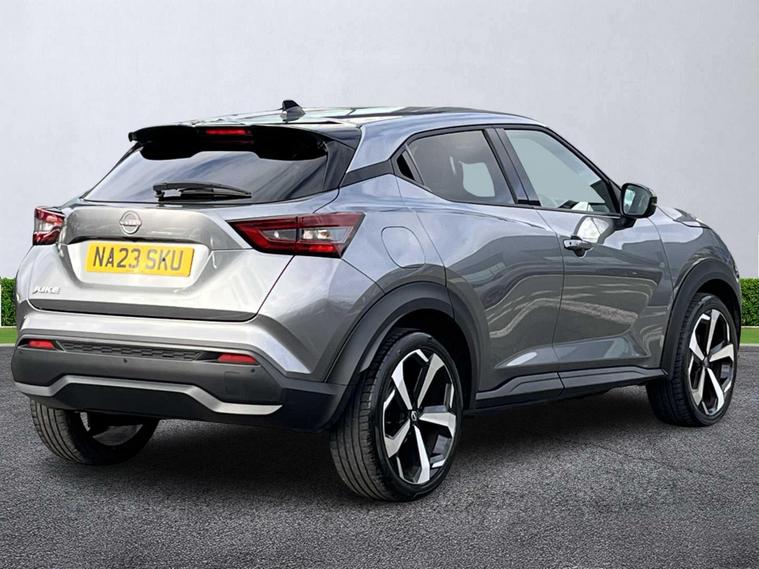 Finished in sleek Gun Metallic, this 2023 (23 plate) Nissan JUKE 1.0 DIG-T 114 Tekna DCT delivers bold styling, premium equipment and smooth automatic performance in Nissan’s standout compact SUV. Powered by the efficient 114 ps DIG-T petrol engine and paired with the refined DCT automatic transmission, it offers responsive acceleration, impressive efficiency and a confident, refined drive whether in town or on longer journeys. Inside, the Tekna trim brings a premium feel throughout, with high-quality materials, advanced onboard technology and a driver-focused layout. The elevated seating position provides excellent visibility, while the five-door layout and versatile boot space make the JUKE perfectly suited to commuting, family duties and weekend adventures. As a Tekna model, this JUKE comes exceptionally well equipped with cutting-edge driver-assistance systems, premium comfort features and modern connectivity designed to enhance every journey. This example has had one owner from new and benefits from a full service history, showing careful ownership and consistent maintenance. Offered for sale by Lookers Nissan Sunderland, this JUKE has been fully inspected and prepared to our exacting standards, ensuring complete peace of mind. Contact our friendly and knowledgeable team today to arrange a test drive and experience the premium feel, technology and capability of the Nissan JUKE Tekna DCT for yourself.