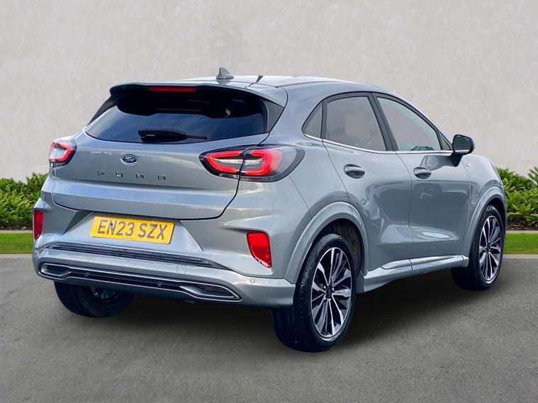 The Ultimate Expression of Luxury: Ford Puma ST-Line Vignale Why choose between a sporty hot-hatch look and high-end luxury? This Ford Puma ST-Line Vignale is the range-topping model that combines the aggressive "ST-Line" styling with the plush, premium refinement of Ford’s "Vignale" brand. With one private owner from new and a full service history, this low-mileage hybrid is the most sophisticated version of Britain’s favorite crossover. Vehicle Overview Model: Ford Puma 1.0 EcoBoost Hybrid (mHEV) ST-Line Vignale Engine: 1.0L Mild Hybrid (mHEV) – Smooth, responsive, and highly efficient. Mileage: 21, 304 Miles Ownership: 1 Private Owner Service History: Full Service History (FSH) Body Style: 5-Door Crossover The "Vignale" Luxury Suite Sitting above the ST-Line X, the Vignale trim adds a level of craftsmanship usually reserved for luxury sedans: Premium Leather Interior: Exquisite Windsor leather seats with unique quilted stitching and a Sensico®-wrapped dashboard. Massage Front Seats: Lumbar massage functionality for both driver and passenger—perfect for relaxing on long commutes. Winter Comfort: Equipped with Heated Front Seats and a Heated Steering Wheel as standard. Upgraded Exterior: Exclusive Vignale front grille, unique 18" alloy wheels, and elegant chrome detailing. Full LED Lighting: Fixed LED signature headlights that offer superior visibility compared to standard projector units. Tech & Performance B&O Sound System: A 10-speaker, 675-watt premium audio system for an immersive listening experience. Digital Cockpit: A stunning 12.3-inch customizable digital instrument cluster. Hands-Free Convenience: Features the Ford KeyFree system (keyless entry and start) and front/rear parking sensors. The MegaBox: Includes the innovative 80-litre waterproof storage space under the boot floor—ideal for tall plants or muddy walking boots. Why Buy This Puma? The ST-Line Vignale is for the buyer who wants the sporty handling and "cool" factor of the Puma but refuses to sacrifice on comfort. This one-owner car has been meticulously maintained, has a full paper trail of its service history, and offers the best "creature comforts" Ford provides. Efficiency Note: The 48V mild-hybrid system helps capture energy during braking, providing a boost to acceleration and helping you achieve over 50 MPG on a run.
