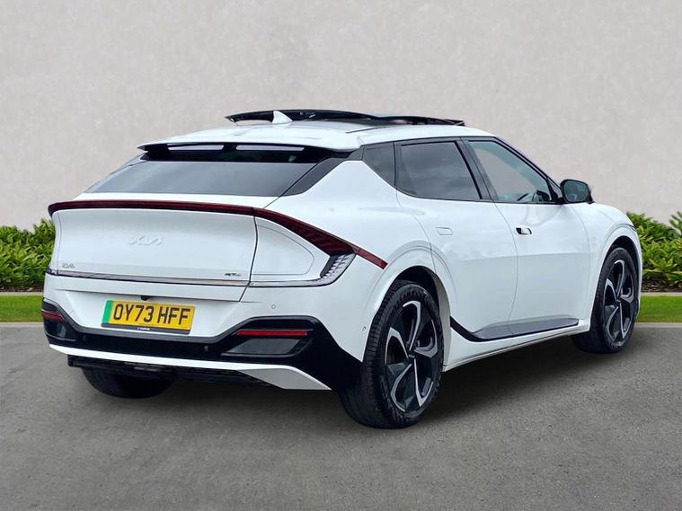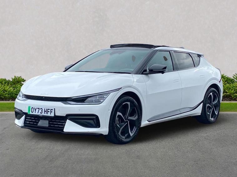 The Future of All-Wheel Drive: Kia EV6 GT-Line S AWD Step into the future with the car that redefined what an electric crossover can be. This Kia EV6 GT-Line S is the top-of-the-range "S" trim, paired with the powerful dual-motor All-Wheel Drive system. It offers supercar-rivaling off-the-line speed, a massive specification list, and some of the fastest charging technology in the world. With 26, 166 miles, this award-winning EV has been perfectly maintained and is ready to deliver high-performance, emission-free driving. The Highlights Model: Kia EV6 236kW GT-Line S 77.4kWh 5dr AWD Auto Power: 321 BHP (236kW) with dual motors Acceleration: 0–62 mph in a blistering 5.2 seconds Battery & Range: 77.4kWh battery with up to 300 miles (WLTP) Mileage: 26, 166 Miles Charging: 800V architecture — 10% to 80% in just 18 minutes (on a 350kW charger) The "GT-Line S" Luxury Experience As the flagship trim, the GT-Line S comes loaded with features that make every journey an event: Tilt & Slide Sunroof: A rare find in EVs, bringing an open, airy feel to the futuristic cabin. Meridian Premium Sound System: A 14-speaker masterpiece with Active Sound Design. Augmented Reality Head-Up Display (HUD): Projects driving data and navigation directly onto the windshield. Premium Relaxation Seats: Fully electric, heated, and ventilated front seats that can recline into a "lie-flat" position while you charge. Smart Tech: 360-degree Surround View Monitor, Blind-Spot View Monitor (live camera feed in the dash), and Remote Smart Park Assist (move the car using the key fob). Key Features 20-inch GT-Line Alloy Wheels and aggressive GT-Line exterior styling. Vehicle-to-Load (V2L): Use your car as a giant power bank to plug in 3-pin household appliances—perfect for camping or coffee machines! Dual 12.3-inch Curved Displays: Seamlessly integrated screens for navigation, media, and driver info. Heat Pump: Helps maximize range and efficiency during those cold winter months.