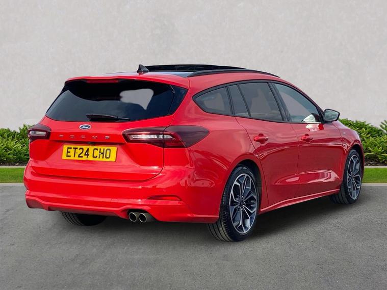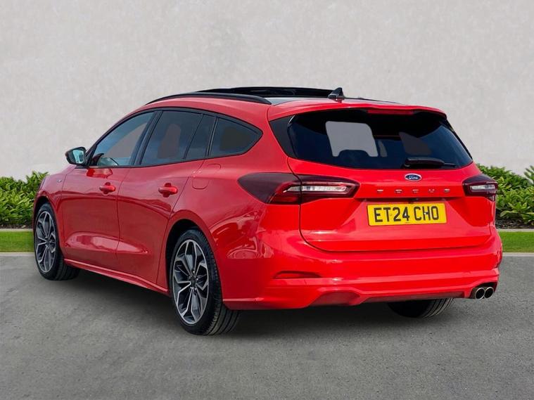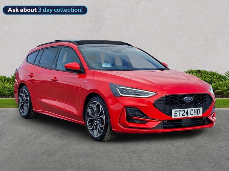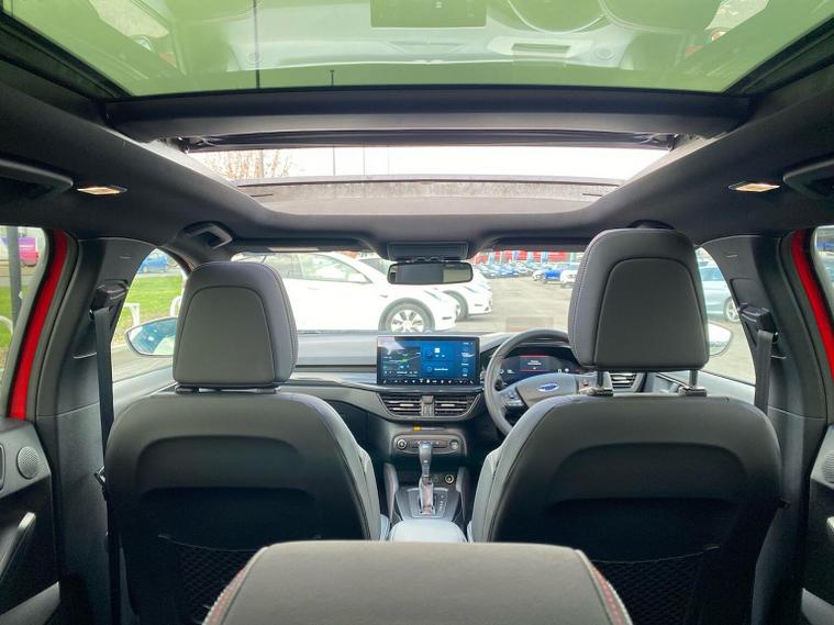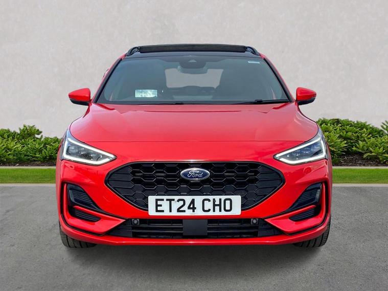 THE ULTIMATE SPEC FORD FOCUS ST-LINE X 1.0 EcoBoost Hybrid mHEV 155 | Automatic | 9, 987 Miles If you are looking for the highest-specification Ford Focus in the country, this is it. This isn't just an ST-Line X; it is a showcase of every premium option Ford offers, finished in the powerful 155PS hybrid engine with a seamless automatic gearbox. Ultra-Low Mileage: Just 9, 987 miles from new. ?? The "Must-Have" Factory Upgrades: This vehicle was curated with every desirable pack. You won't find another one quite like it: Panoramic Openable Glass Roof: Floods the cabin with natural light. Heads-Up Display (HUD): Keep your eyes on the road with speed and nav projected onto the glass. Driver Assistance Pack: Includes Adaptive Cruise Control, Traffic Sign Recognition, and High Beam Assist. Parking Pack: Effortless parking with automated steering and a high-resolution camera system. Hands-Free Power Tailgate: Open the boot with a simple kick gesture under the bumper—ideal for when your hands are full. Full Luxury Leather Interior: A rare upgrade from the standard partial-leather, offering a truly premium feel. High-End Technology & Safety: Blind Spot Information System (BLIS): Added peace of mind for motorway lane changes. Dynamic LED Headlights: Incredible night-time visibility with a signature look. B&O Premium Sound System: Studio-quality audio for the true music lover. SYNC 4 Connectivity: Large touchscreen with Wireless Apple CarPlay & Android Auto. Performance & Style: The mHEV 155 engine provides the perfect balance of punchy performance and fuel efficiency, while the ST-Line X body styling, 18" alloys, and sports suspension give it an unmistakable road presence.