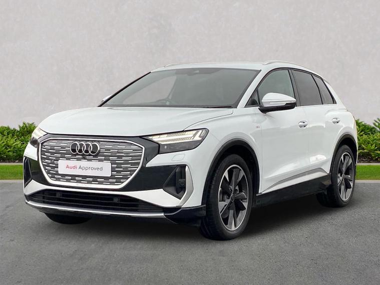Reference: LX74SWO . Teesside Audi are offering a rare opportunity to own this AUDI Q4 ESTATE e-tron 45 S line SUV 5dr Electric Auto 82kWh (286 ps). This 1 owner vehicle has full service history, has been prepared for sale by our fully trained, experienced and skilled technicians passing our exacting pre sale checks and is ready to go. ===================================================================== Audi’s compact electric SUV, the Q4 e-tron delivers modern styling, a refined ride, and all the benefits of EV driving. Spacious and tech-focused, it’s perfect for those making the jump to premium electric mobility. This car is supplied with the following optional upgrades :- TECHNOLOGY PACK which adds smart driving aids and convenience tech. . Standard features on this car include Integrated SATELLITE NAVIGATION with real-time routing and traffic updates. FULL LEATHER delivering a luxury feel in the cabin. CLIMATE CONTROL which automatically regulates cabin temperature for you. VIRTUAL COCKPIT so that you can customise the digital dashboard with maps, gauges, and media. CRUISE CONTROL to maintain a steady speed without constant pedal input. FRONT AND REAR PARKING SENSORS to help manoeuvring in tight spaces whether you are going forward or reversing. REAR CAMERA for easier and safer reversing. HEATED FRONT SEATS to keep your comfortable in cold weather conditions. Plus lots more. FINISHED IN GLACIER WHITE METALLIC PAINT WITH UPGRADED TECHNOLOGY PACK, MATRIX LED HEADLIGHTS, SONOS SOUND AND 20" ALLOYS ===================================================================== 150 MULTI POINT CHECK | AUDI PARTS |FACTORY TRAINED TECHNICIANS 12 MONTH MANUFACTURER BACKED WARRANTY & ROADSIDE ASSISTANCE. AUDI CONNECTED|HISTORY CHECKS ===================================================================== Lookers are an authorised representative for a wide range of award-winning car manufacturers, providing you with an unparalleled choice of quality and approved used cars, currently for sale. Our exceptional standards ensure you receive the best possible service when you purchase with us, ensuring peace of mind when you drive away with your new vehicle. With us representing so many great brands we are an excellent position to offer you a fair and transparent price for your part exchange. At Lookers, we care about our customers and want to ensure that the price you see is the price you pay. Our Transparent pricing policy simply means, honest, straightforward pricing offering our vehicles at the best price possible; ensuring no haggling or hassle for you.