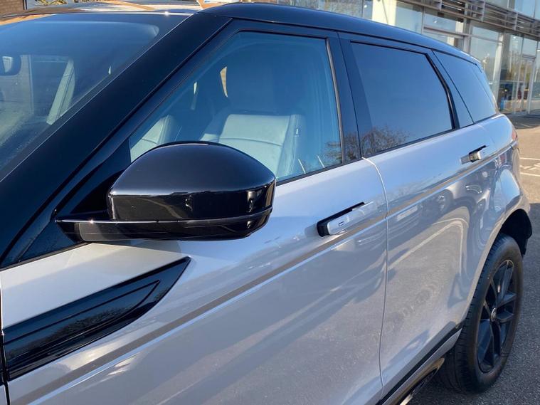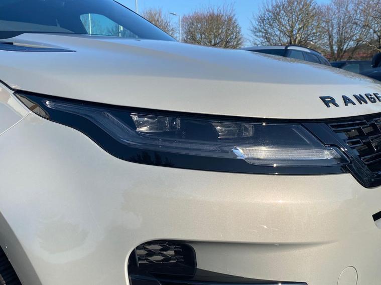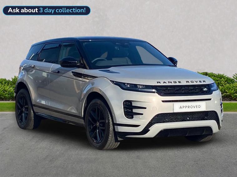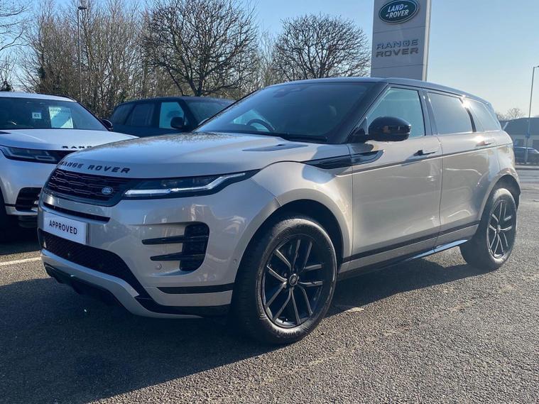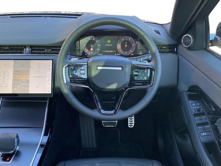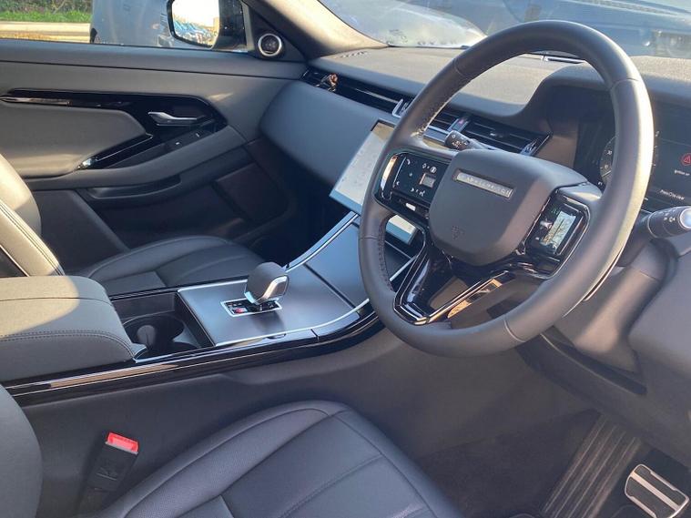 This 2025 Range Rover Evoque D200 Edition is a Land Rover manufacturer approved vehicle with a full service history and only one owner from new. This four wheel drive model features a 2.0 litre diesel engine and meets Euro 6 emission standards. Inside, you will find a Meridian Sound System with 11 speakers and a subwoofer, offering 400w of audio power, alongside the convenience of keyless entry and wireless device charging. For enhanced safety and awareness, it includes Blind Spot Assist. Compatibility with Android Auto and Apple Carplay is also included. Furthermore, the car also benefits from a Panoramic Sunroof, Privacy Glass, 3D 360 Surround Camera, Heated Steering Wheel, Contrast Black Roof and a Black Pack. This Evoque D200 Edition offers impressive performance with a 0-60mph acceleration time of just 7.9 seconds, demonstrating its capability compared to other vehicles in its class. It also boasts a fuel economy of 45 mpg, highlighting its efficiency. Furthermore, this model benefits from low CO2 emissions, making it a more environmentally conscious choice.