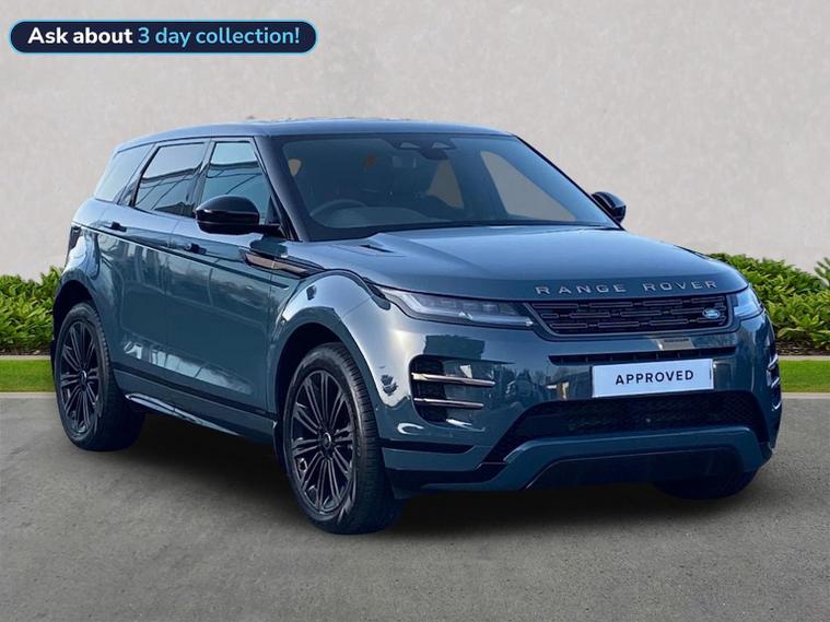 This 2025 Range Rover Evoque D200 Autobiography is a Land Rover manufacturer approved vehicle with a full service history and only one owner from new. This exceptional example features a powerful 2.0L Diesel engine, delivering Euro 6 emissions compliance and a responsive four wheel drive system. Inside, you will find luxurious Autobiography trim, complete with 14 way electrically adjustable front seats with memory function and two way manual headrests, a Sliding Panoramic Sunroof, Heated Steering Wheel, Heated Seats, Climate Control and plenty of Parking Sensors. Enjoy enhanced privacy with privacy glass on all rear glass panels, and a suite of advanced driver aids including Adaptive Cruise Control and a 3D Surround Camera system for effortless parking. Experience impressive performance with an acceleration of 0 to 60 miles per hour in just 7.9 seconds, all while achieving an outstanding fuel economy of 43 miles per gallon. The low CO2 emissions further highlight its efficiency compared to similar vehicles. This Evoque also benefits from convenient wireless device charging, ensuring your phone is always ready to go. This combination of sophisticated features, strong performance, and excellent efficiency makes this Range Rover Evoque a truly desirable choice.