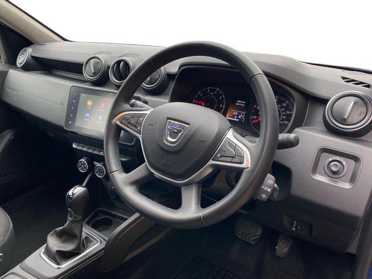 Power meets practicality at Lookers Renault & Dacia Stockport with this high-performance Dacia Duster Comfort Automatic. Forget what you think you know about Dacia performance—this 1.3 Turbo petrol engine delivers a surprising 150 horsepower, making it incredibly responsive and capable of towing or full-car family trips with ease. Paired with the rare EDC Automatic gearbox, it offers a refined driving experience that rivals much more expensive SUVs. This is the post-facelift 2021 model, featuring the updated 3D chrome grille, Y-shaped LED daytime running lights, and the upgraded 8" Media Display. Comfort Specification Highlights: Infotainment: 8" Media Display with Apple CarPlay & Android Auto (via USB). Parking Made Easy: Integrated Rear-View Camera and rear parking sensors. Advanced Gearbox: 6-speed Dual-Clutch Automatic for seamless gear changes. Exterior Styling: 16" 'Cyclade' Alloy Wheels, black roof bars, and satin chrome skid plates. Interior Comfort: Height-adjustable driver’s seat with lumbar support and a sliding centre armrest. Convenience: Cruise control, speed limiter, and heated electric door mirrors. Why buy from Lookers Dacia Stockport? As a manufacturer-approved dealer, we pride ourselves on quality. This Duster has been fully appraised by our expert technicians and is ready for its next owner. Finance Packages: Tailored PCP and HP quotes available. Part Exchange: Get a competitive market valuation for your current vehicle. Peace of Mind: Every car is HPI clear and undergoes a rigorous mechanical health check. Click & Collect: Secure this car online today with a fully refundable deposit.