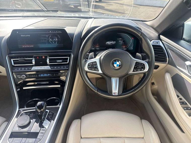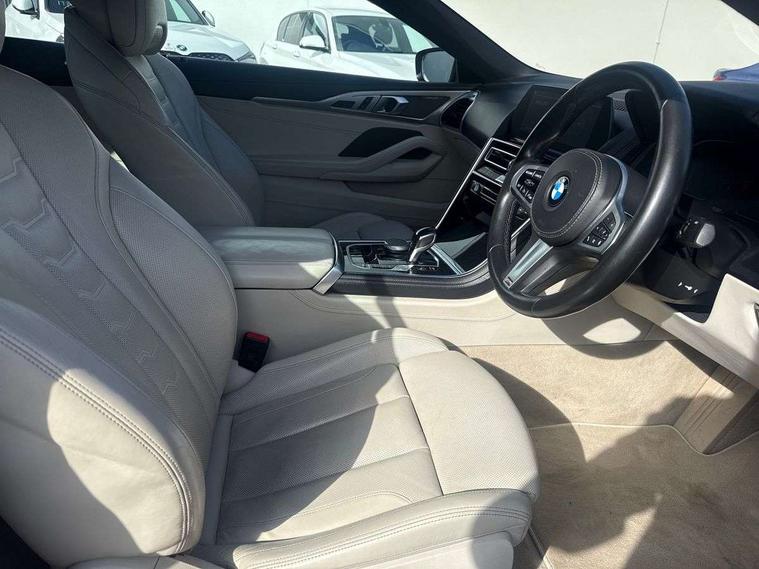 Welcome to BMW Crewe. Individual frozen bluestone BMW 840d with an ivory white full merino leather interior. If you are viewing from a distance let us bring the car to you via video link where one of our BMW experts will demonstrate the car to you on your smart device, allowing you to view the vehicle in the comfort of your own home. Thank you for viewing our advert, we look forward to assisting you further.