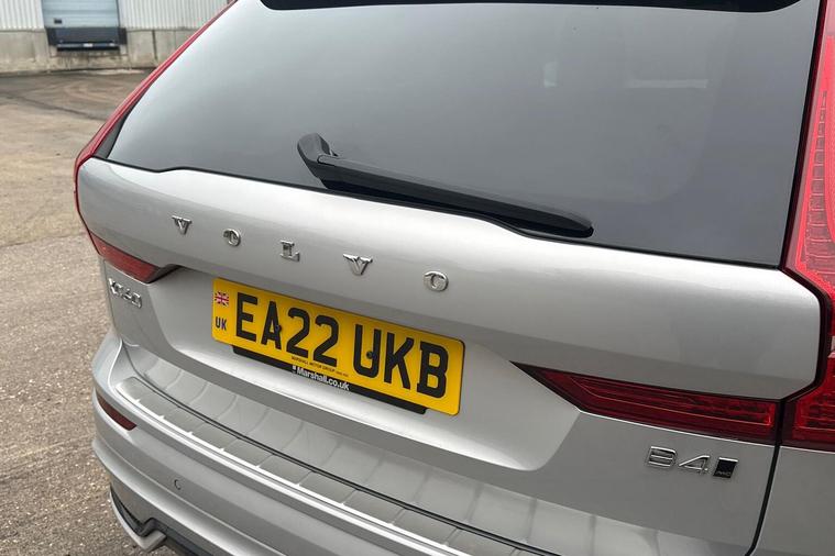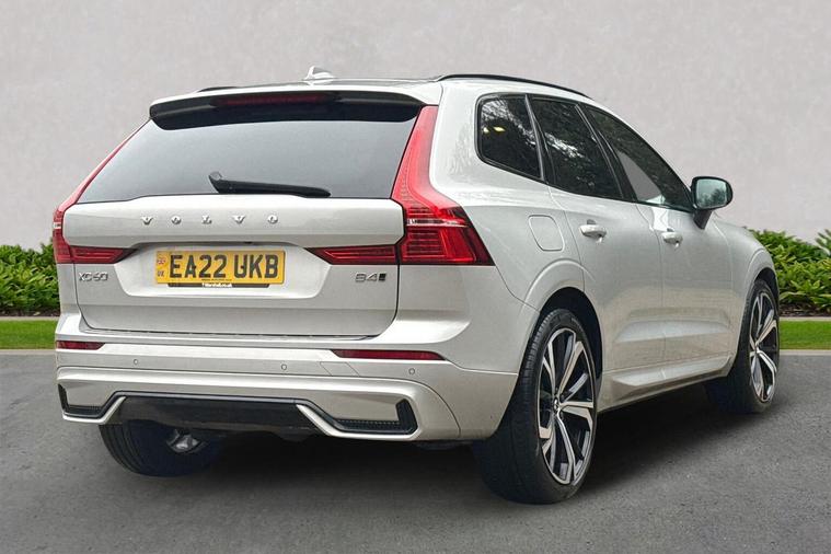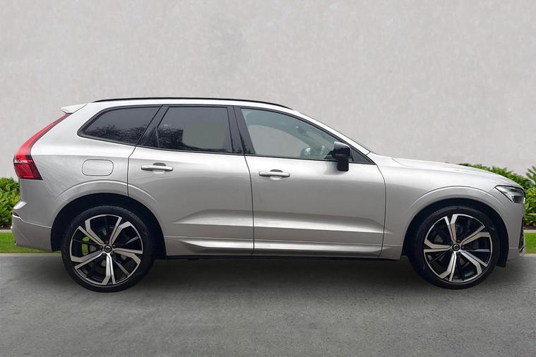 8-speed Automatic transmission. AWD Power Driver's Seat with Memory for Seat Sport Pedals Tailored leather gear shift with contrasting seams 2-Zone Electronic Climate Control Afterrun parking climate Passenger Airbag Cut Off Switch Dual Stage Driver and Passenger Airbags Driver Knee Airbag Charcoal headlining Road Sign Information Driver Alert Control with Lane Keeping Aid R-Design grille with high-gloss black insert Heated grill emblem Full-LED headlights Headlight Cleaning System Front LED Foglights 12-inch driver display Google Automotive Services Cruise Control Head-Up Display in Windscreen (Heated Windscreen will be replaced if HUD is ordered) Adjustable Speed Limiter DAB (Digital Audio Broadcasting) Radio High Performance Sound Autofolding Heated Power Door Mirrors Automatic door locking Door mirror covers. Black Stone Dark Tinted Rear Windows Anti-theft Alarm including Immobiliser. Volume Sensor and Level Sensor Power Operated Tailgate Keyless Drive (includes Keyless Entry and Keyless Start) "CleanZone" Air Quality System and Pollen Filter Digital owners manual Metal Mesh aluminium decor Tailored dashboard Nappa leather/Leatherette/Textile upholstery Power Driver's Seat with Memory for Seat Heated Front Seats Five seats Mechanical release second seat row 4-Way Lumbar Support Sport Textile Mats. Charcoal Load Protection Net Rear centre armrest Illuminated Vanity Mirrors Rear Footwell and Side Step Illumination 12v Socket - Cargo Area Load cover. manual Autodimming Inner & Exterior Mirrors Power Cushion Extension. Driver Braking system Indirect Tyre Pressure Monitoring System (iTPMS) Active chassis with air suspension Oncoming Lane Mitigation Hill Descent Control EBL. Flashing Brake Light and Hazard Warning Heated Steering Wheel Tailored sport steering wheel. Charcoal Adaptive power steering 21? 5-Double Spoke (Diamond-Cut/Black) Temporary mobility kit Locking Wheel Nuts Washer Nozzles Colour coordinated door handles with Illumination and Puddle lights Cargo opening metal scuff plate Volvo tread plates. aluminium Glossy Black Window Trim Roof Rails - Integrated. High Gloss Black All-wheel Drive (AWD) Tempered side windows Front and Rear Park Assist Ticket Holder Rear Park Assist Camera Plastic protection cap Contour front seats Whiplash injury protection system IC (Inflatable Curtains) - Full Length Side impact protection ISOFIX Attachment (Outer Rear Seats) Safety belts Rain Sensor - Automatic Windscreen Wiper Activation Steering Wheel Remote Infotainment Control Humidity sensor Start/Stop technology Bluetooth® Handsfree System